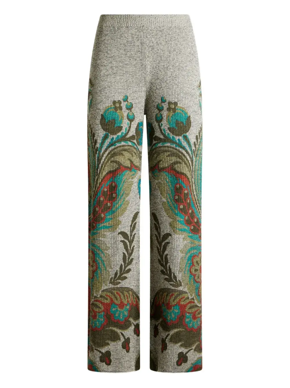 Брюки в рубчик с принтом пейсли ETRO, серый