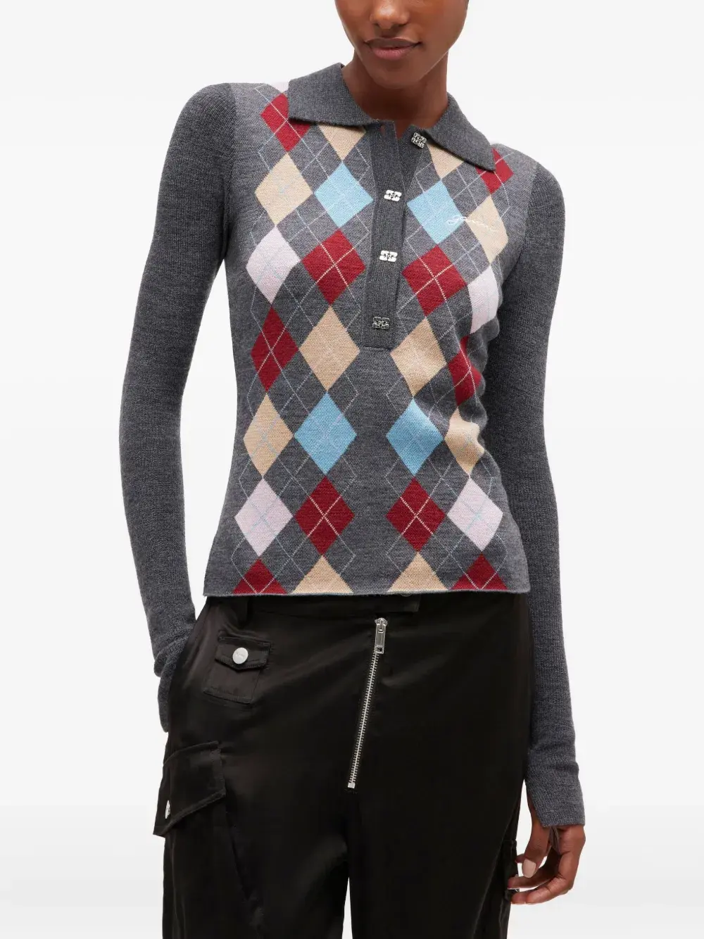 Рубашка поло в рубчик GANNI, серый 28 325₽