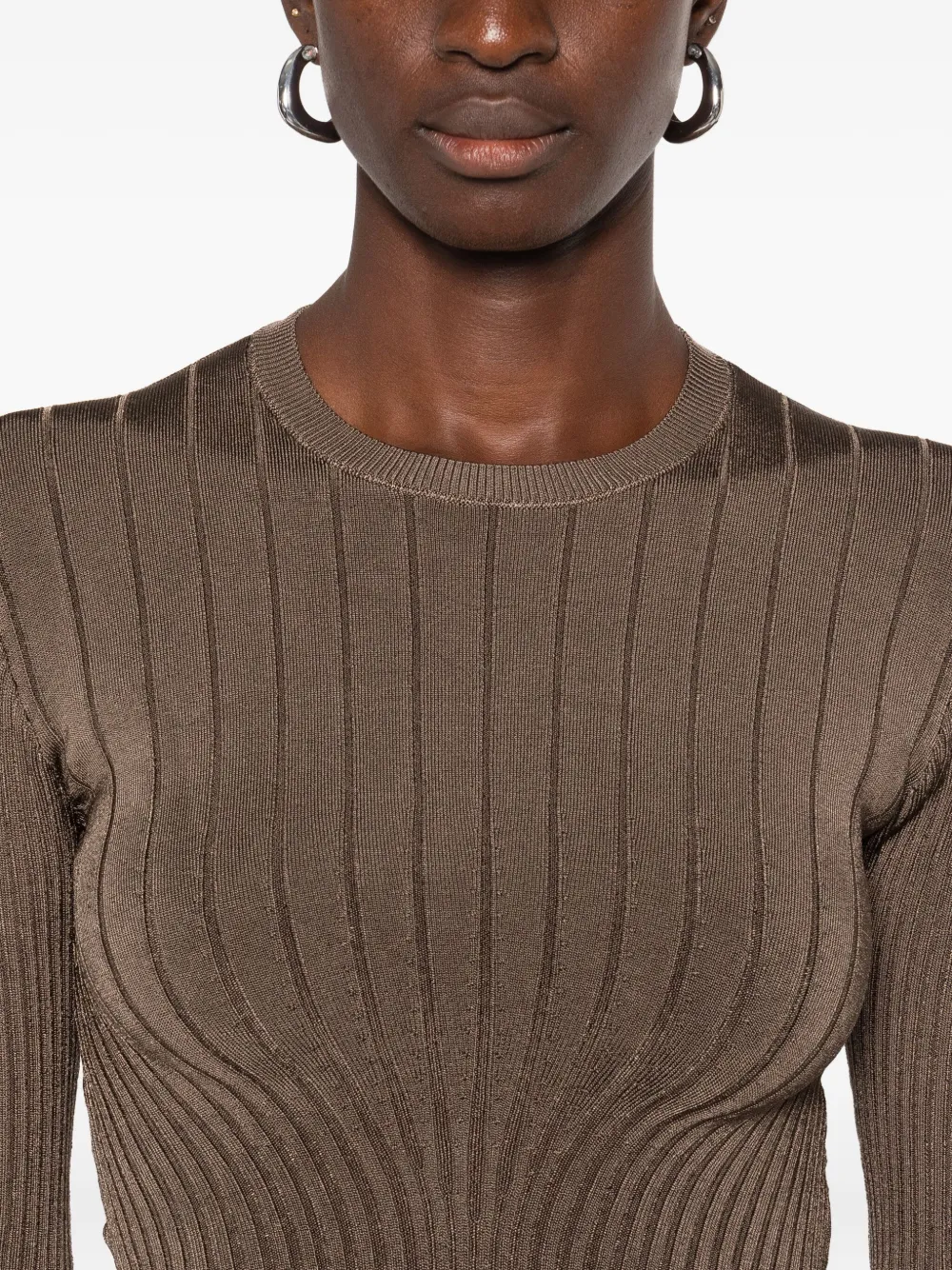 Ребристый свитер с круглым вырезом Mugler, коричневый