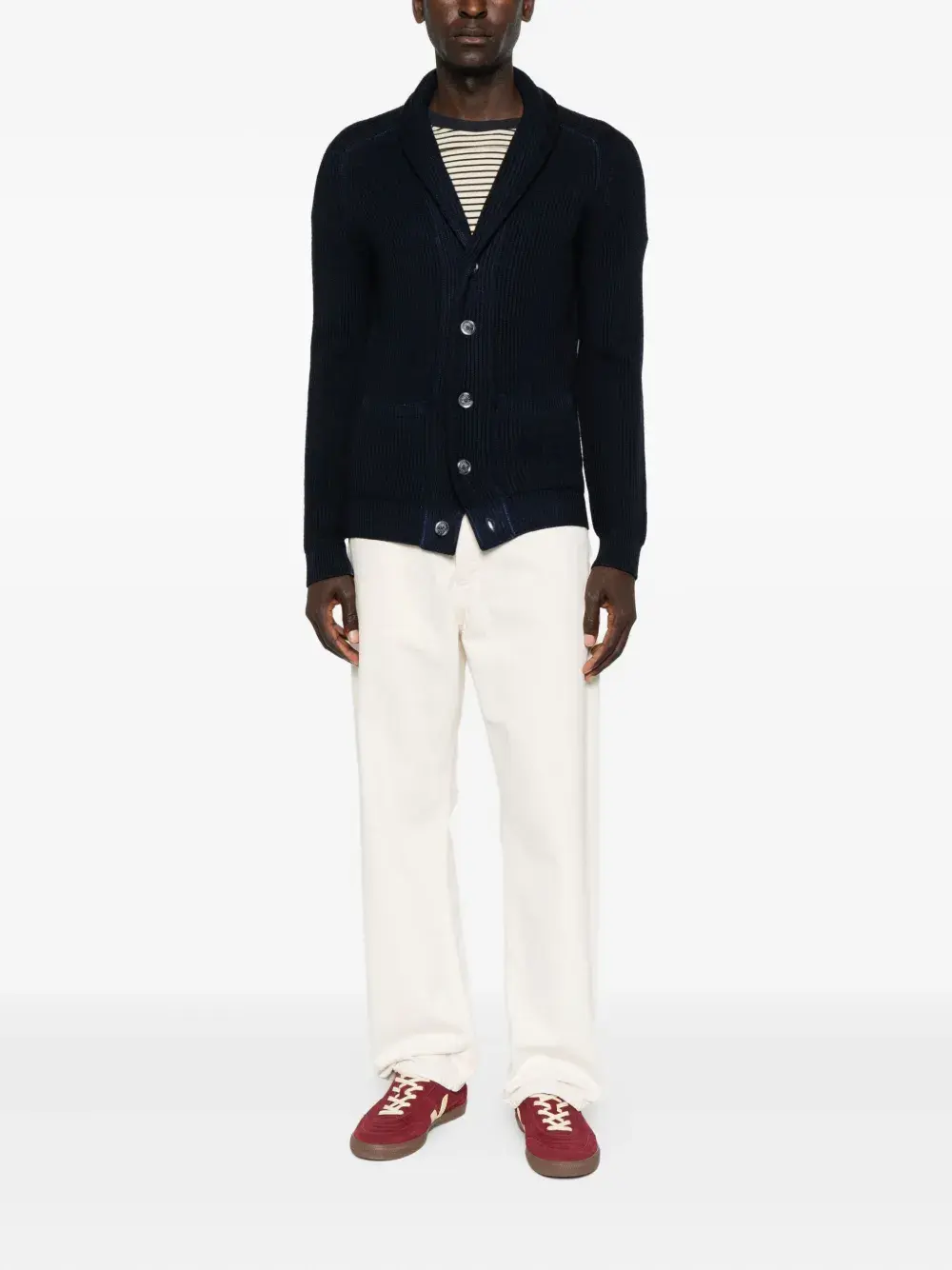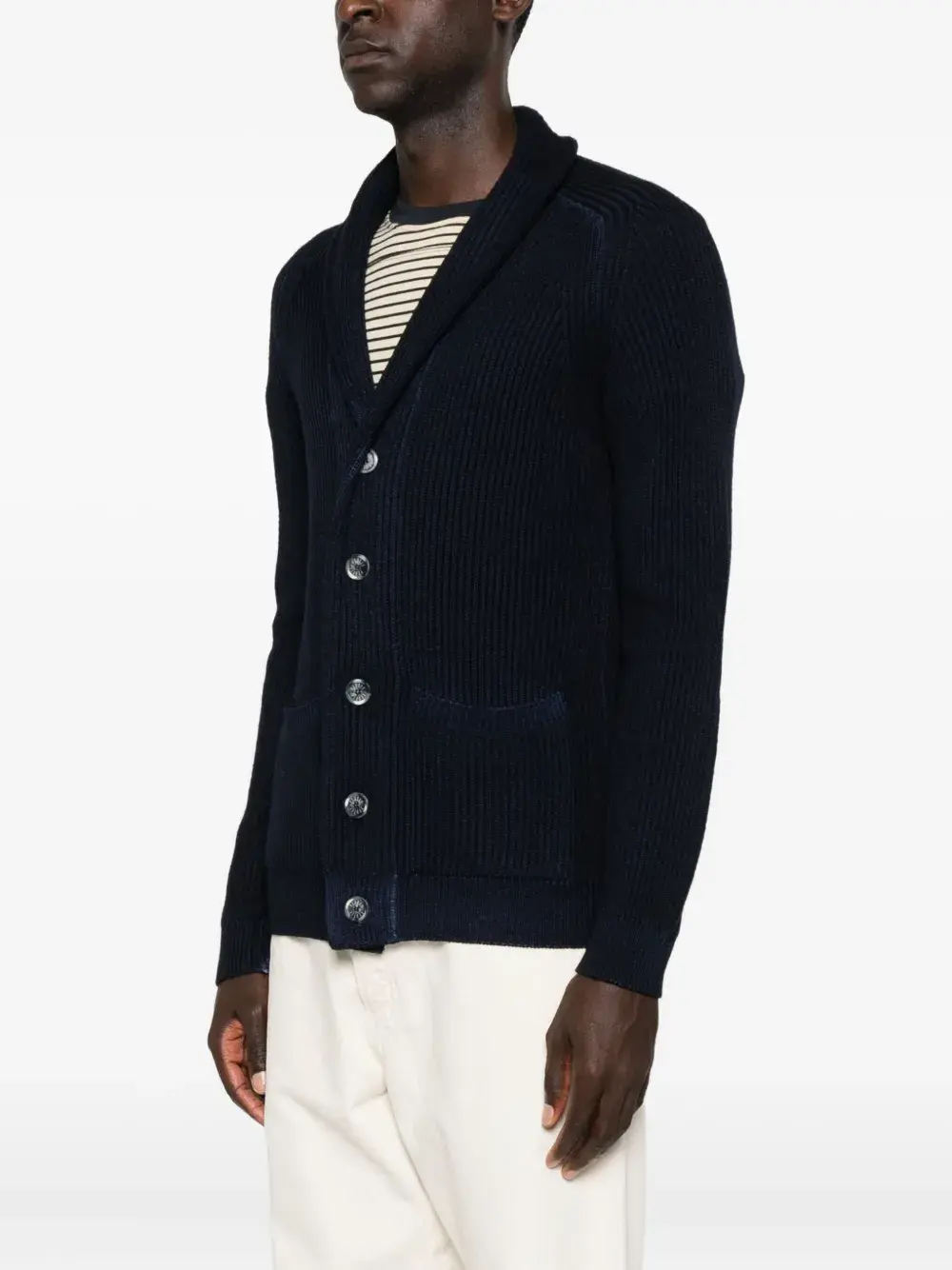 Кардиган с шалевым воротником в рубчик Fedeli, синий