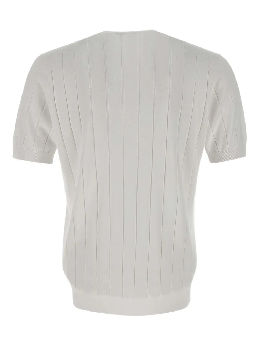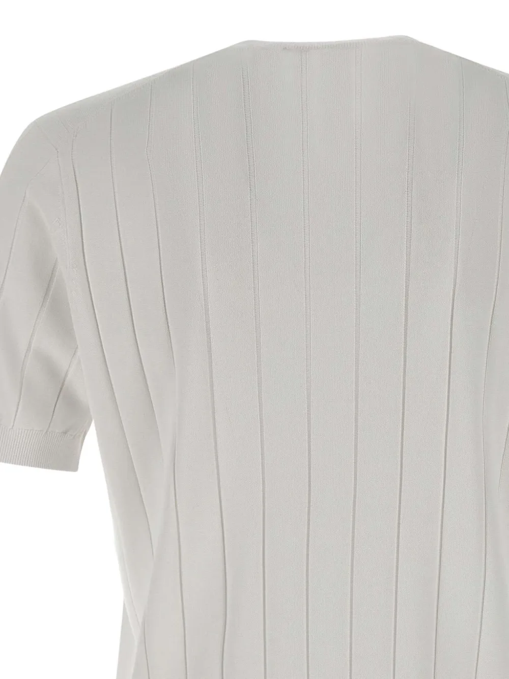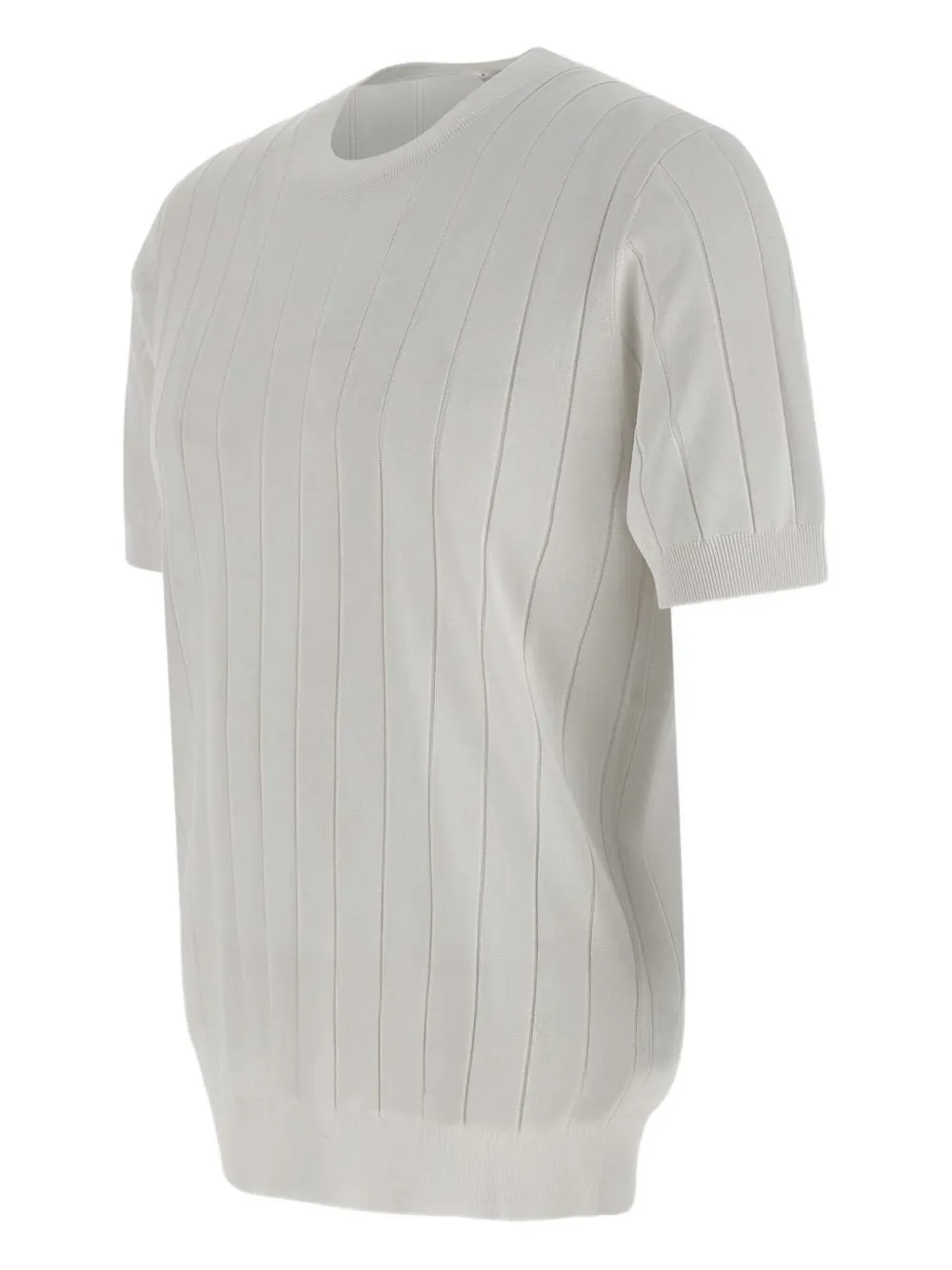 Белоснежный ребристый узор, круглый вырез, короткие рукава