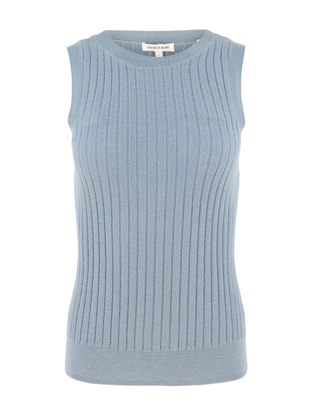 Светло-голубой свитер с круглым вырезом и ребристой текстурой, без рукавов, из мериносовой шерсти