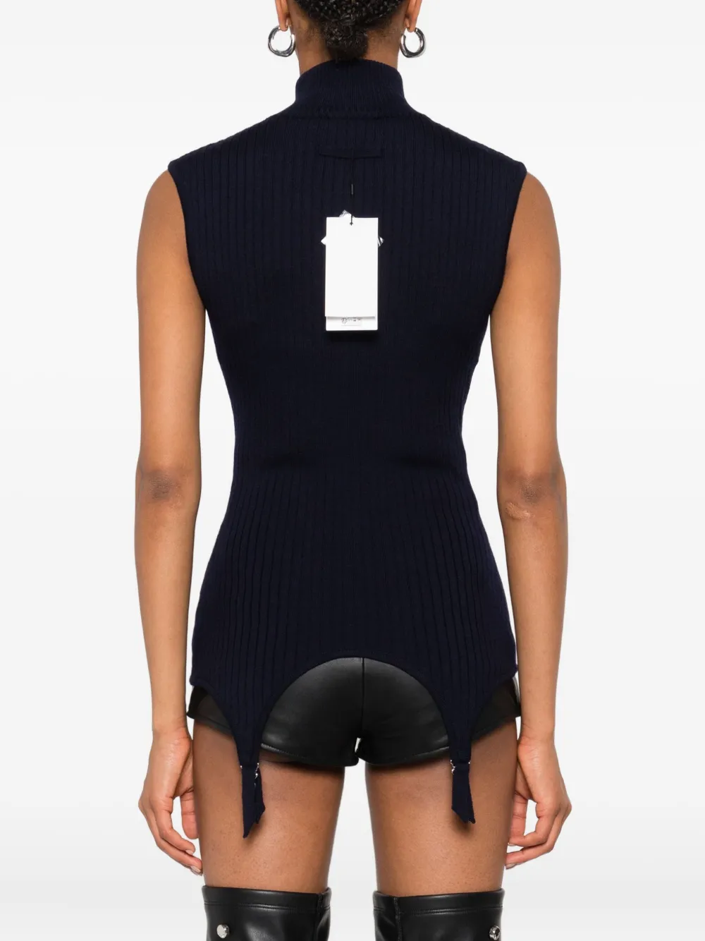 Темно-синие подвязки для чулок с планкой на пуговицах без рукавов