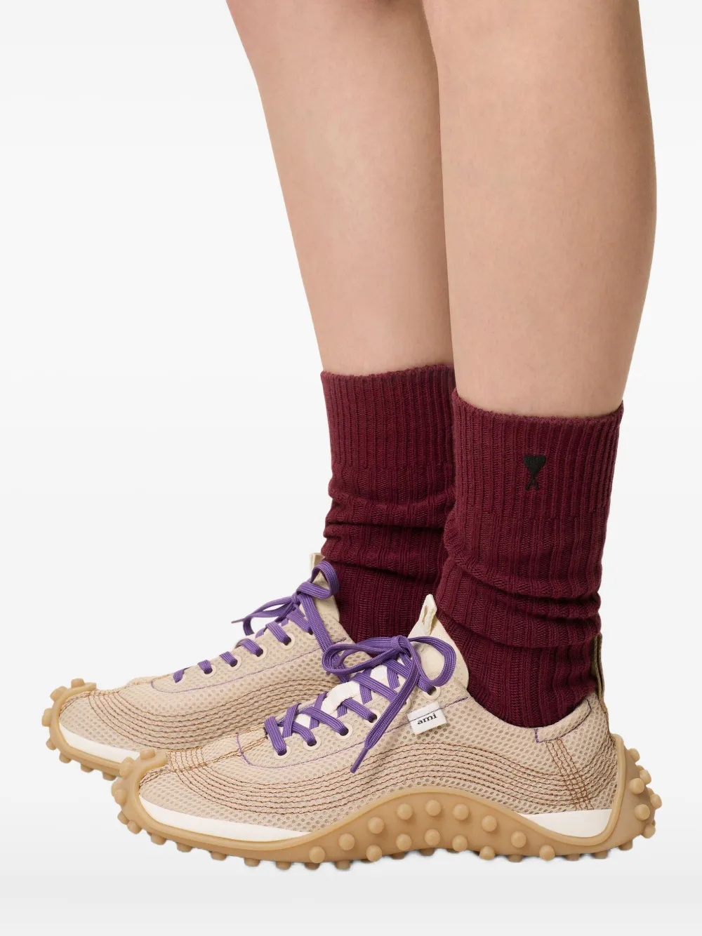 Носки в рубчик с вышивкой AMI Paris, красный