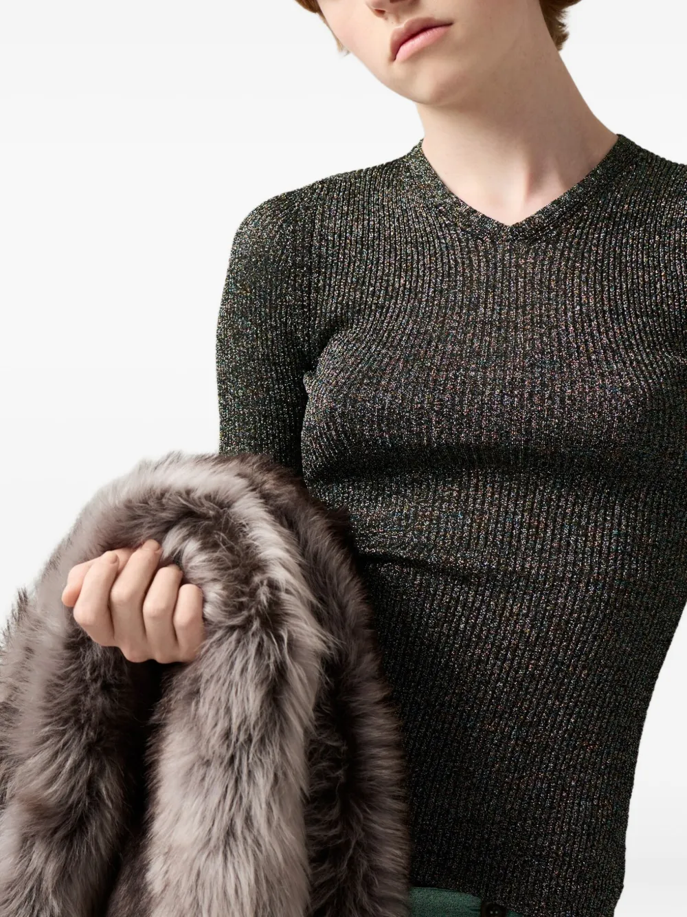 Свитер в рубчик MIU MIU, серый