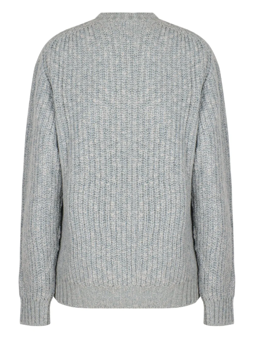 Светло-голубой ребристой вязки с круглым вырезом и длинными рукавами из натуральной шерсти