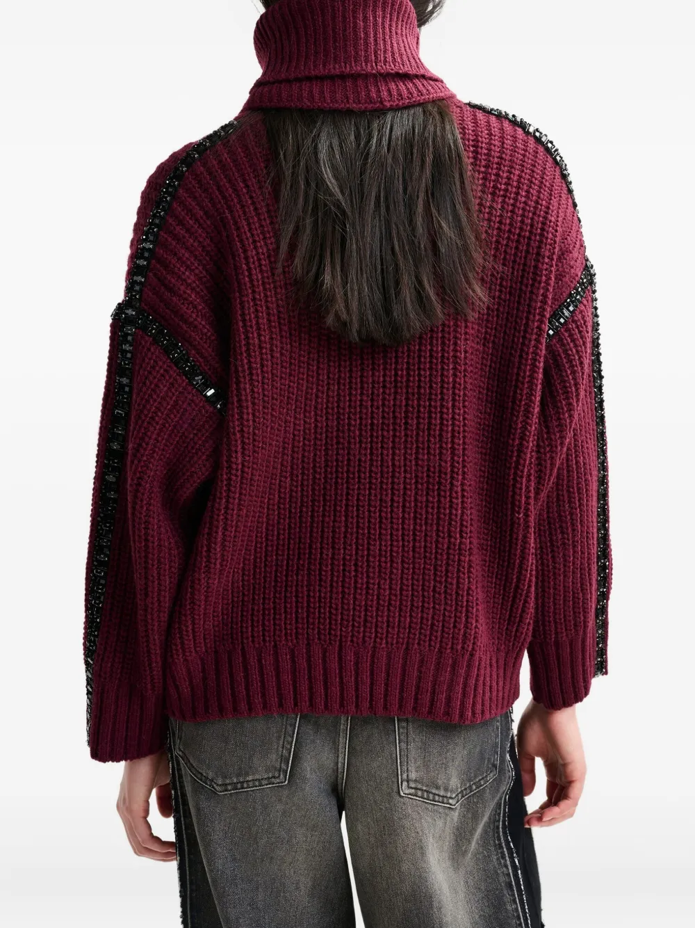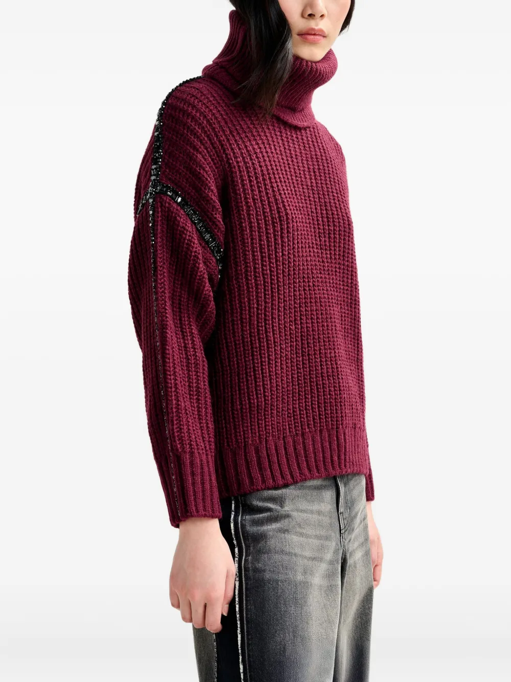 Свитер в рубчик с кристаллами Essentiel Antwerp, красный