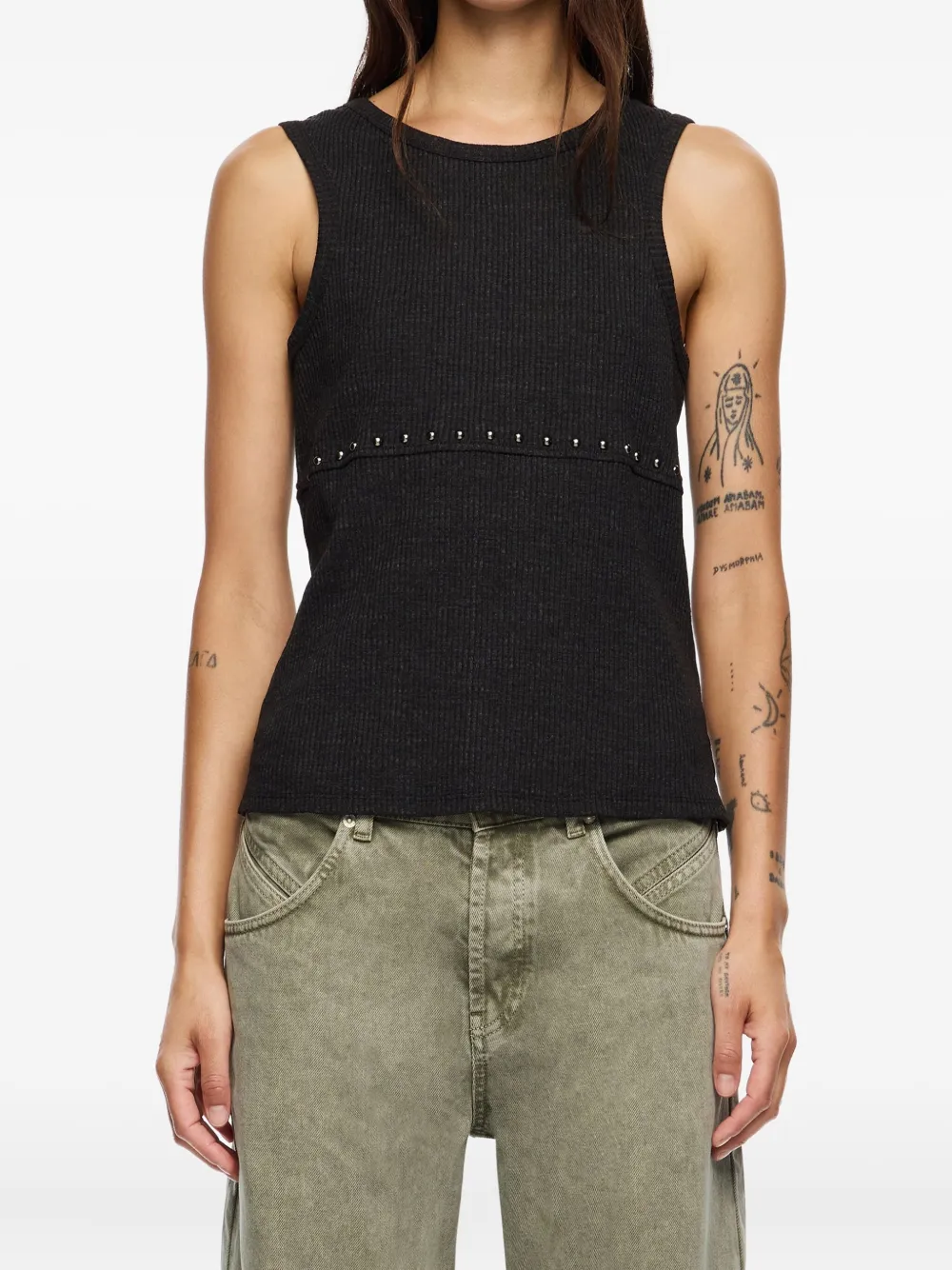 Топ в рубчик с заклепками Bimba y Lola, черный