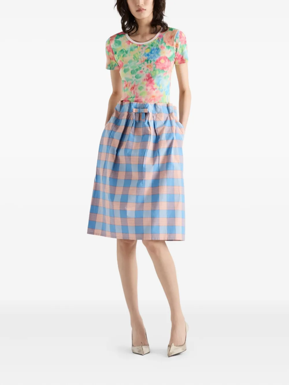 Футболка в рубчик с цветочным принтом Prada, зеленый