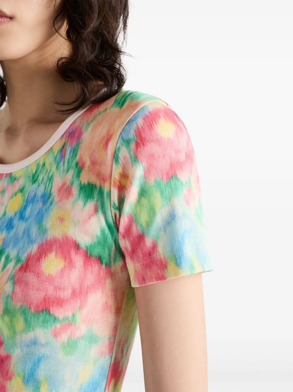 Футболка в рубчик с цветочным принтом Prada, зеленый 137 102₽