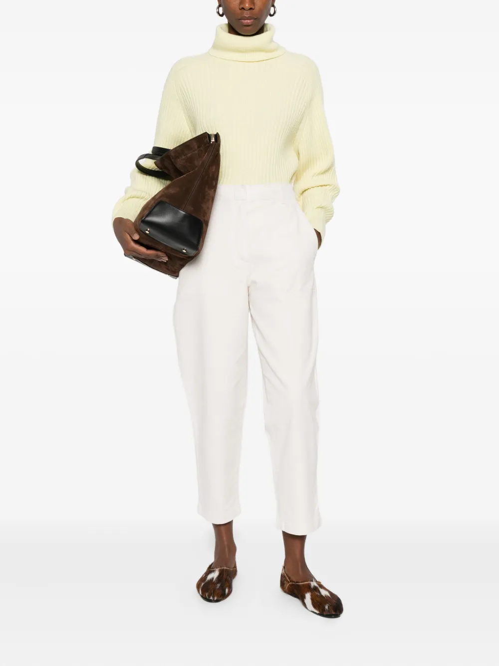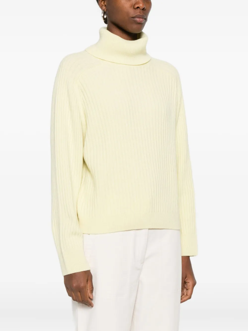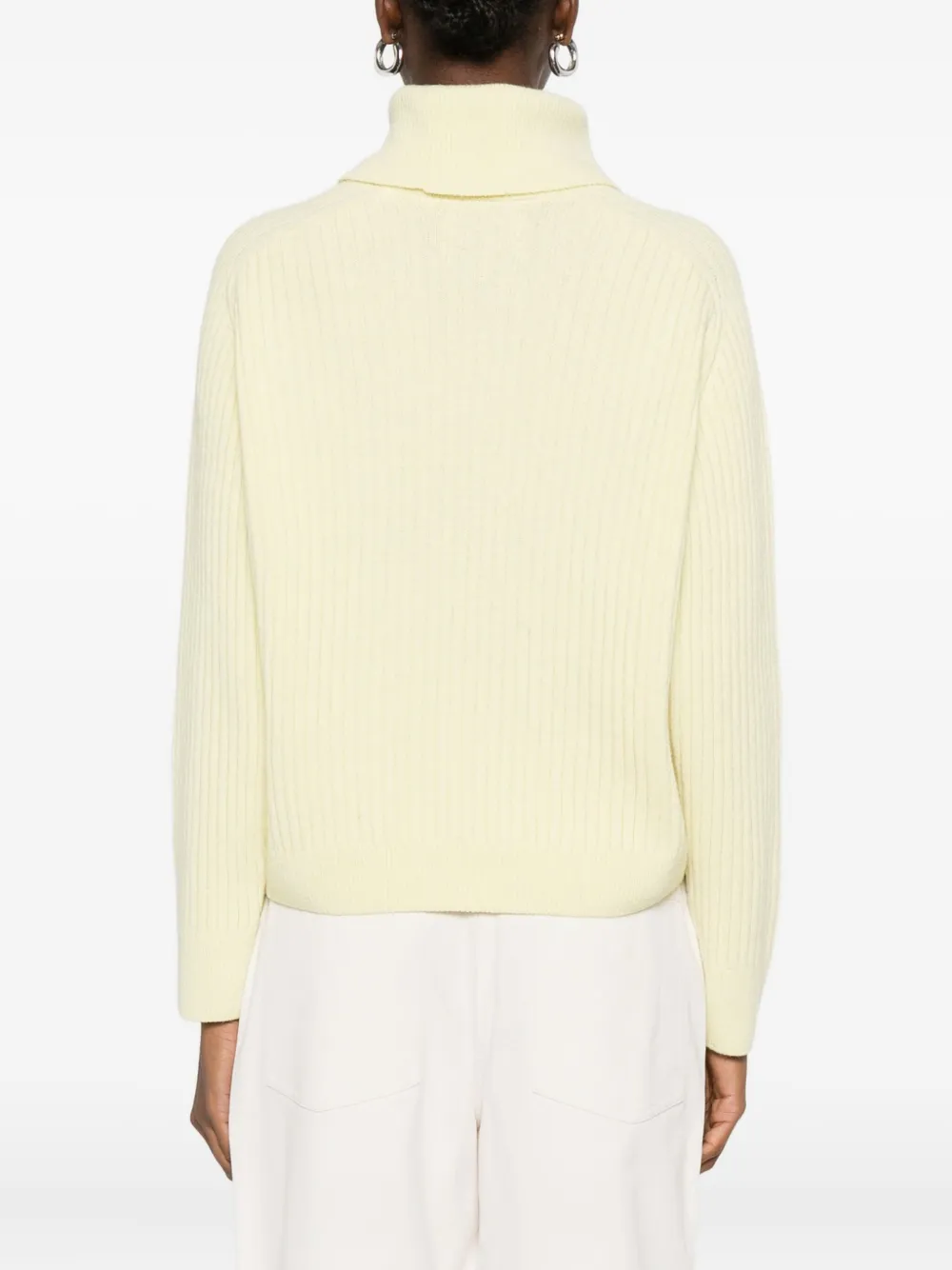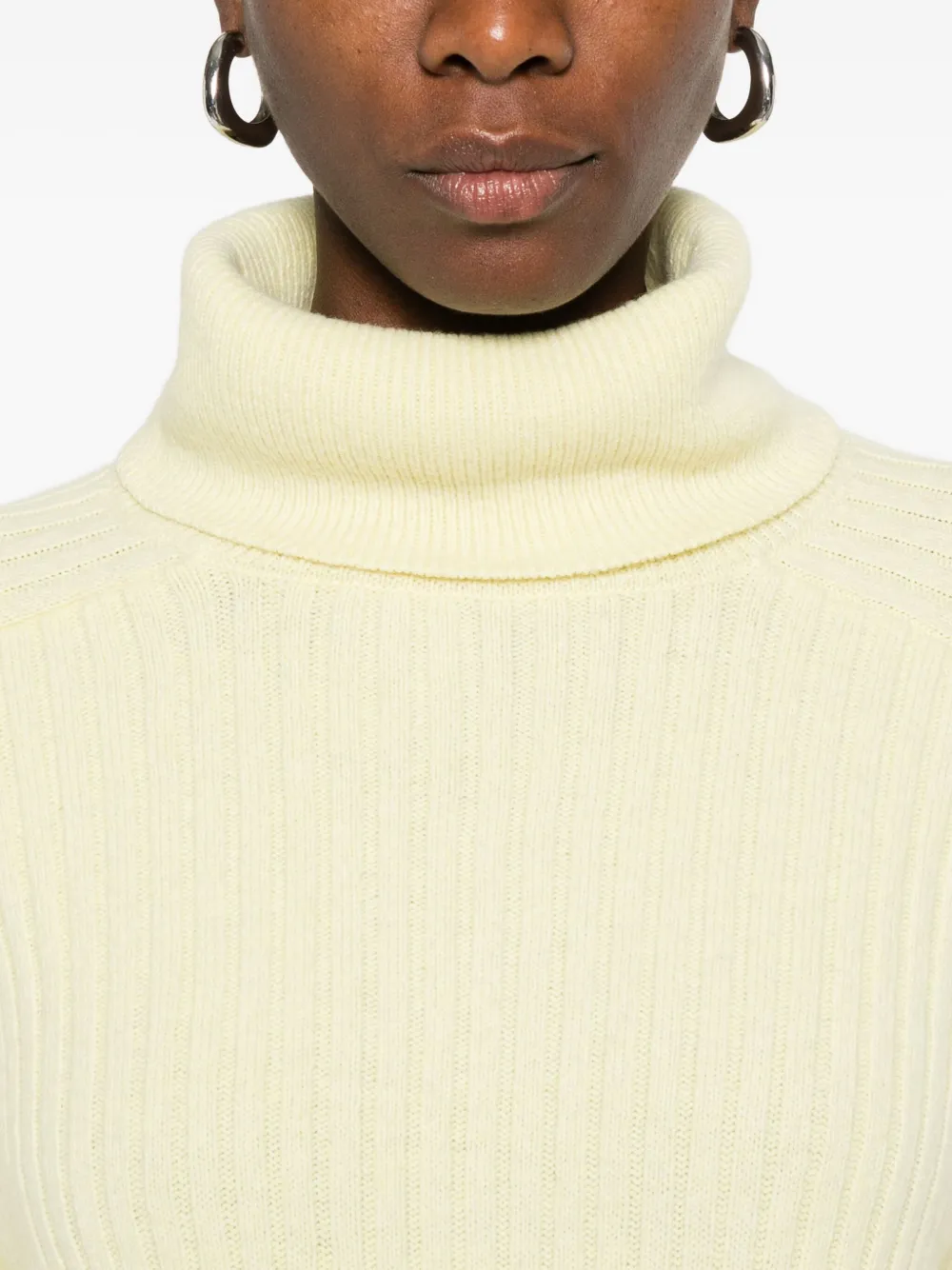 Бледно-желтая водолазка с длинными рукавами из рубчатой вязки