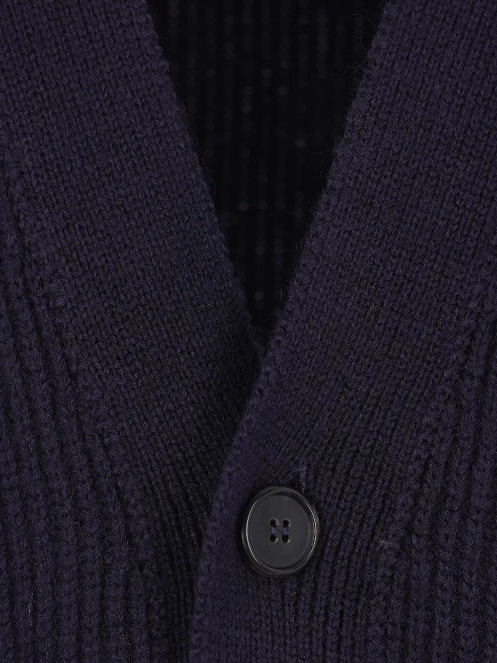 Темно-синий трикотажный ребристая ткань с накладными карманами на пуговицах спереди, шерсть с V-образным вырезом