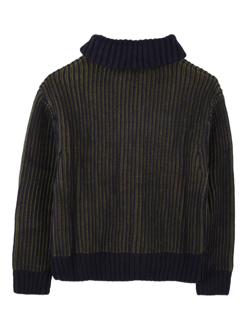 Черная ребристая фактура, застежка-молния, длинные рукава, прямой подол.