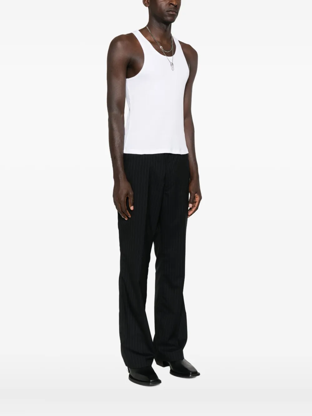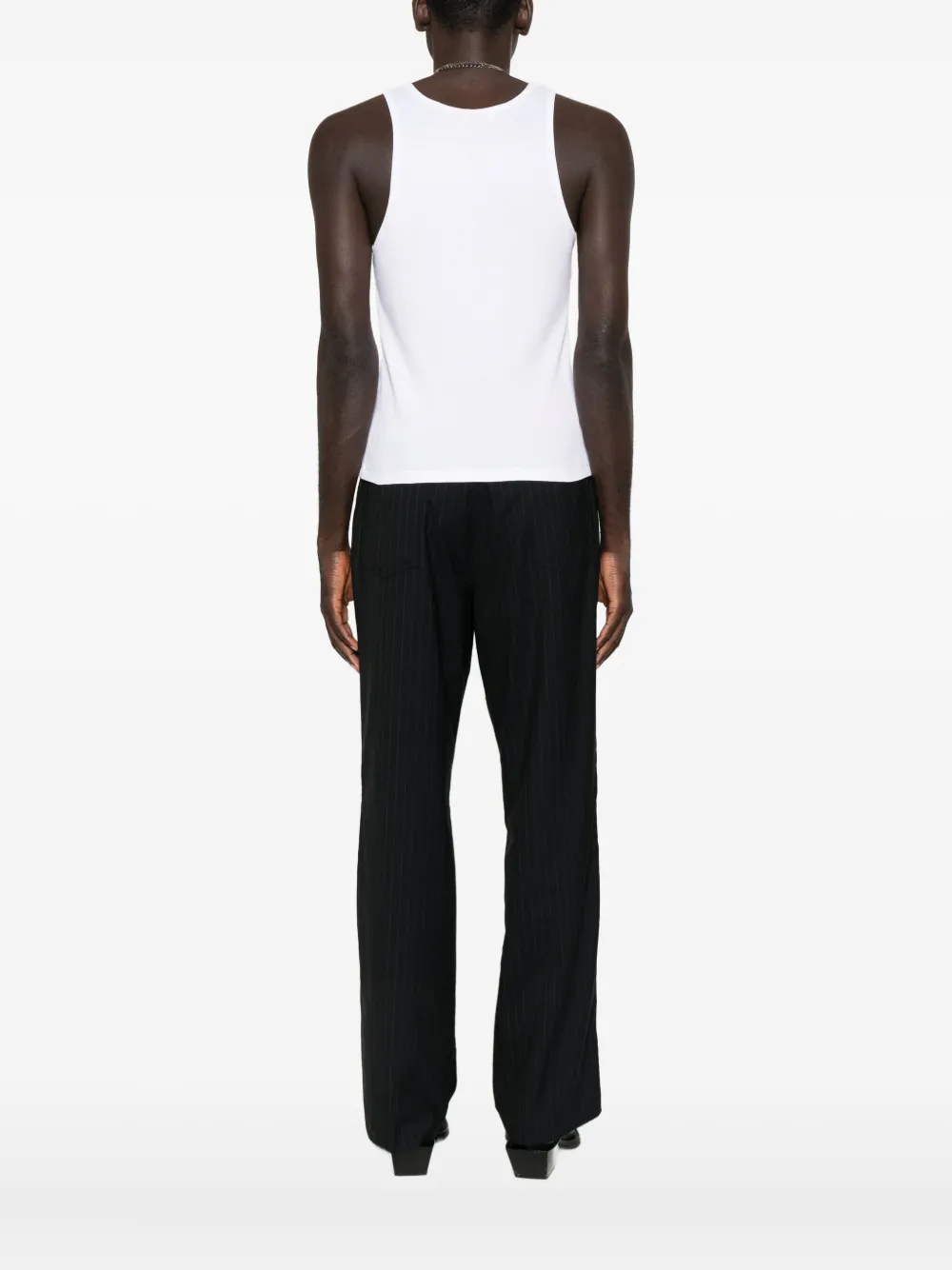 Белый хлопковый топ с ребристой текстурой, без рукавов, с круглым вырезом