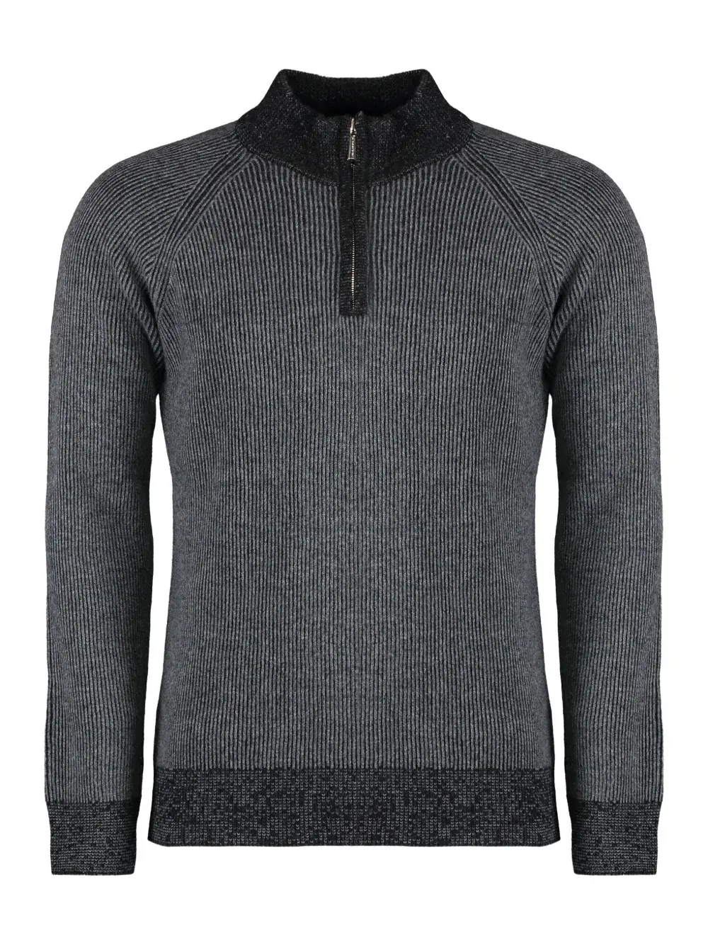 Серый трикотаж в рубчик, застежка-молния, длинные рукава, смесь шерсти и кашемира