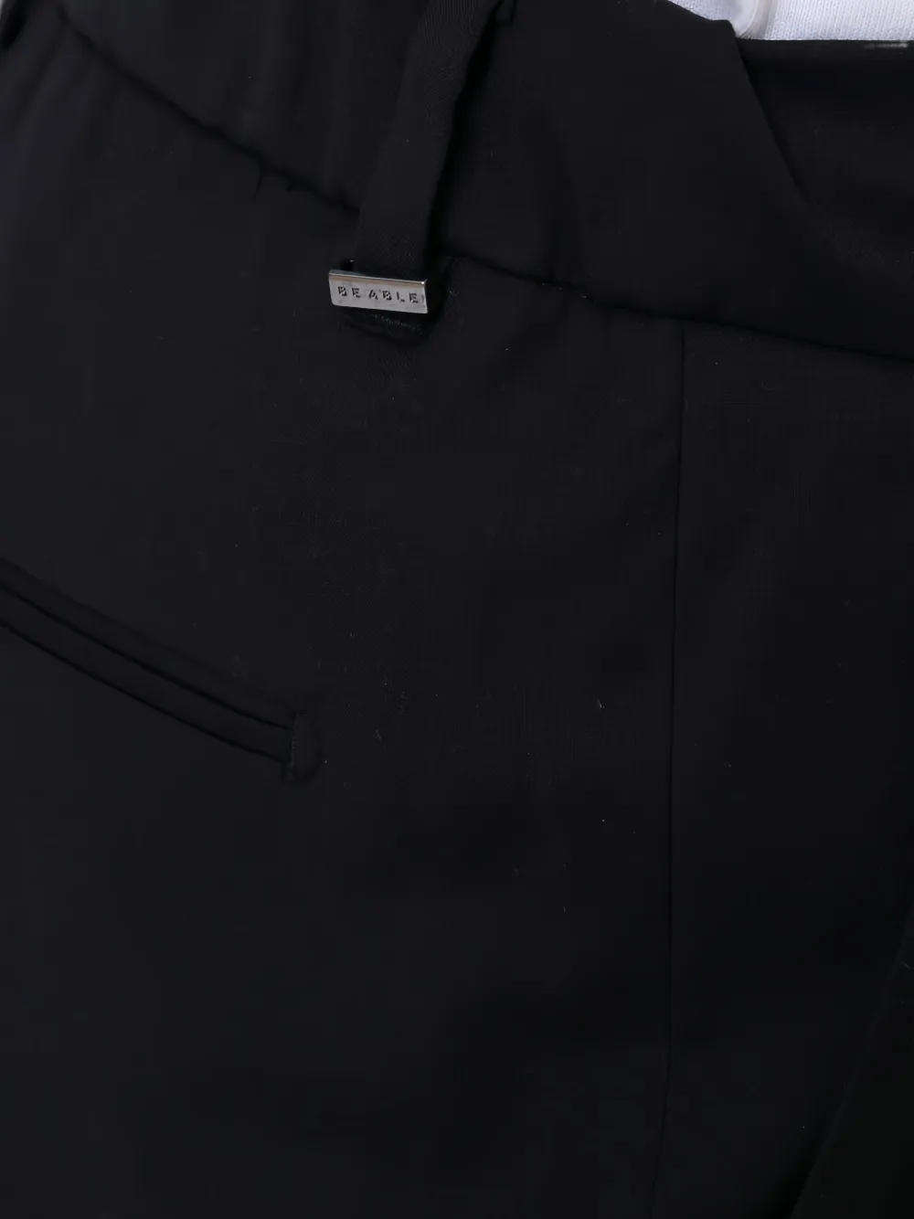 Черный плиссированный передний эластичный пояс на пуговицах, прорезные карманы