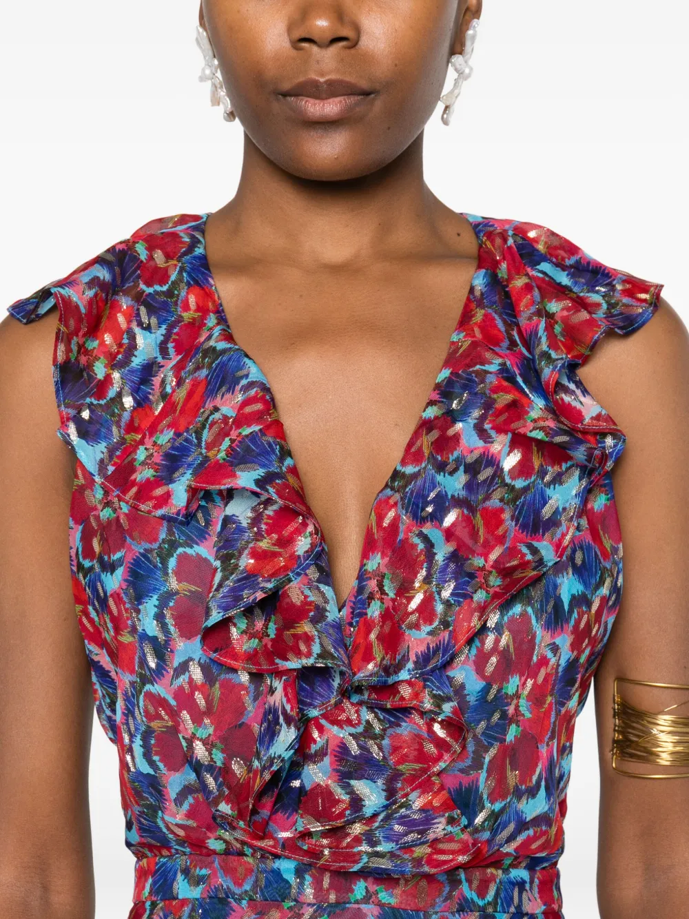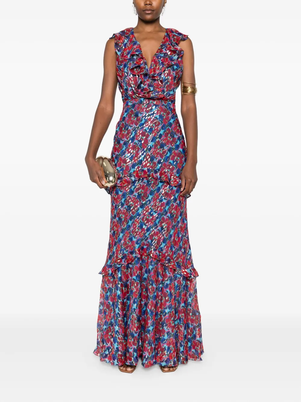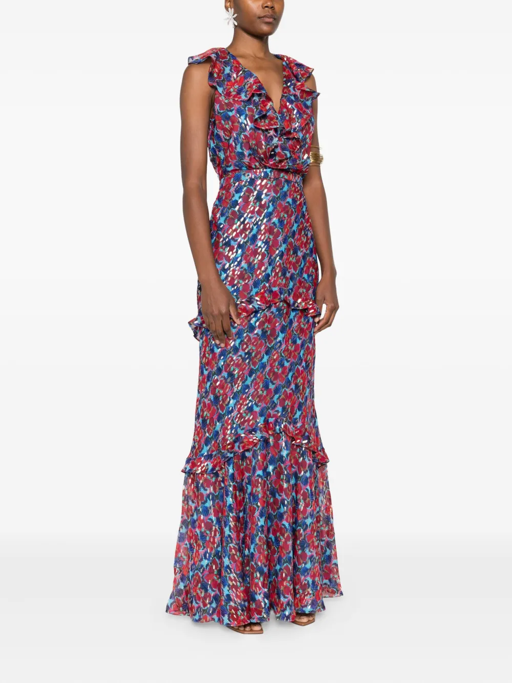 Платье макси Rita с оборками и принтом Saloni, красный