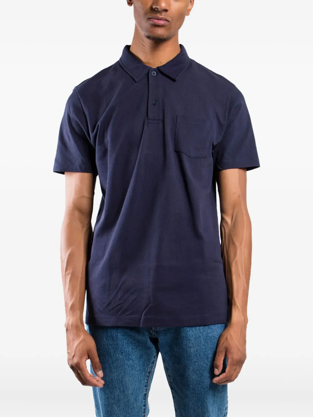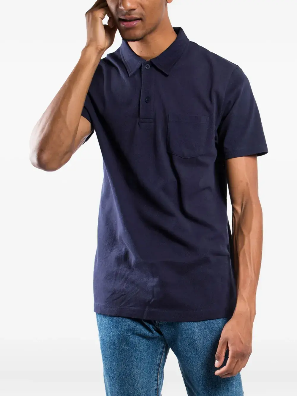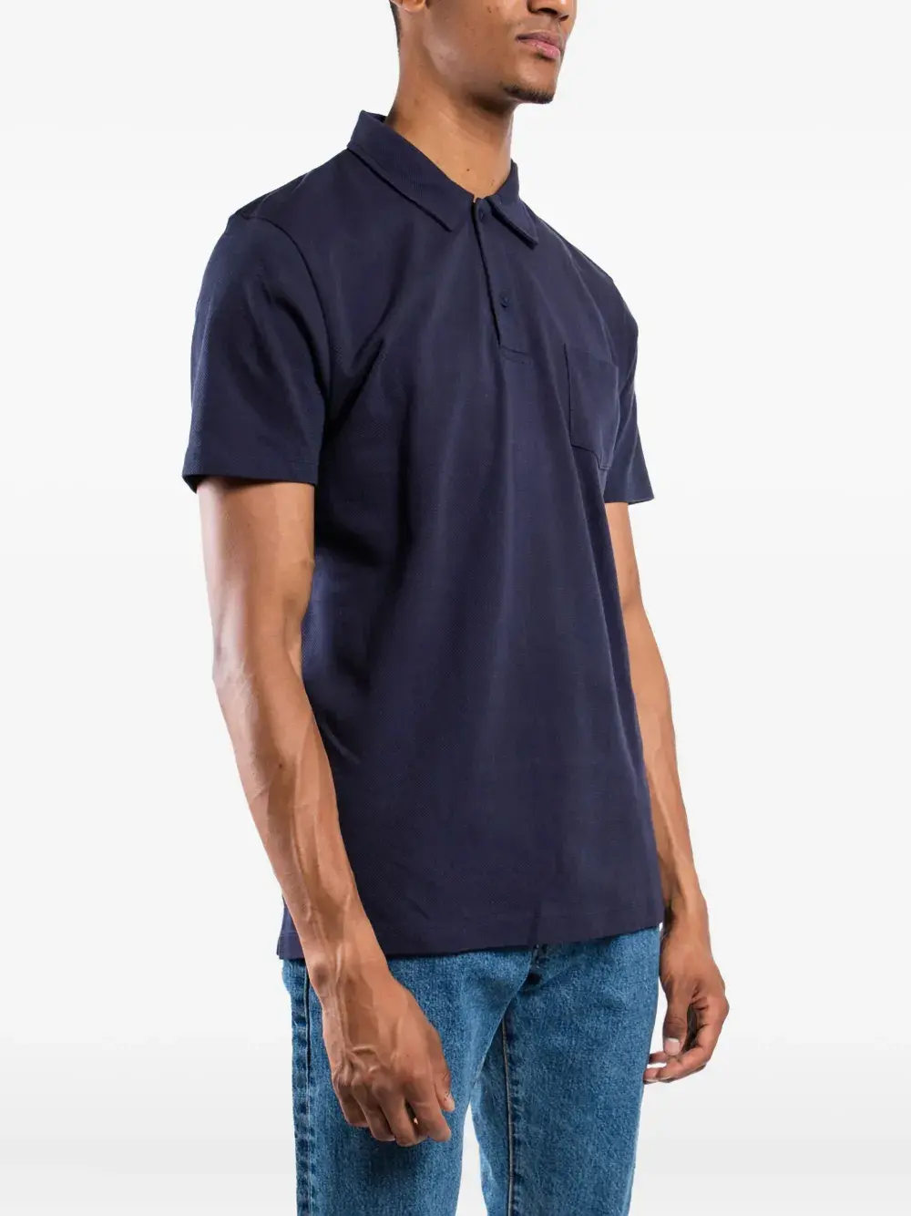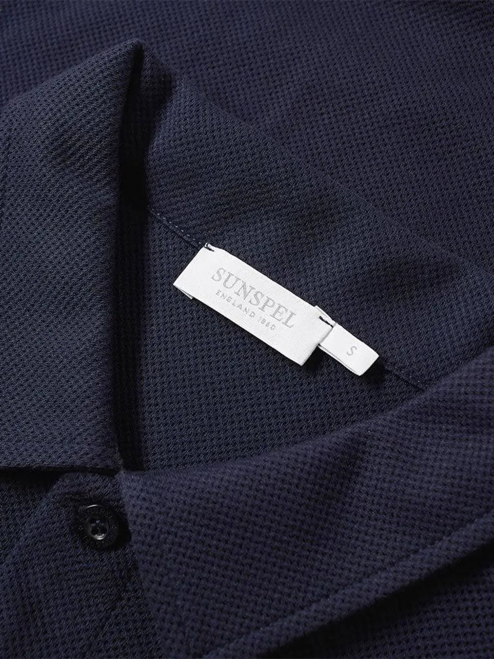 Синяя хлопковая рубашка-поло Riviera от Sunspel.