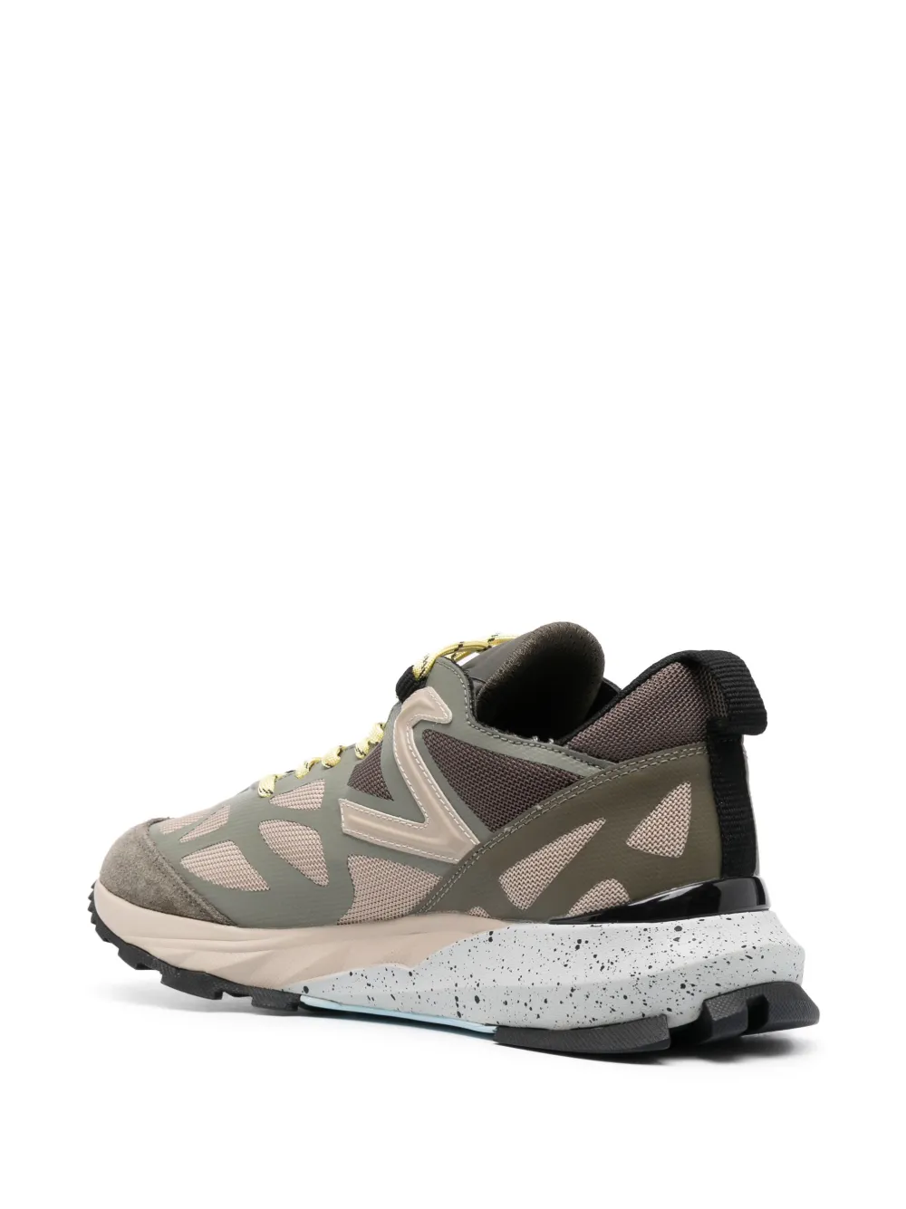 Зеленый, разноцветный, замша из телячьей кожи, телячья кожа, вставки, нашивка с логотипом сбоку, нашивка с логотипом на язычке, петля для подтягивания с логотипом, миндалевидный носок, шнуровка спереди, контрастная резиновая подошва и сегментированная резиновая подошва.