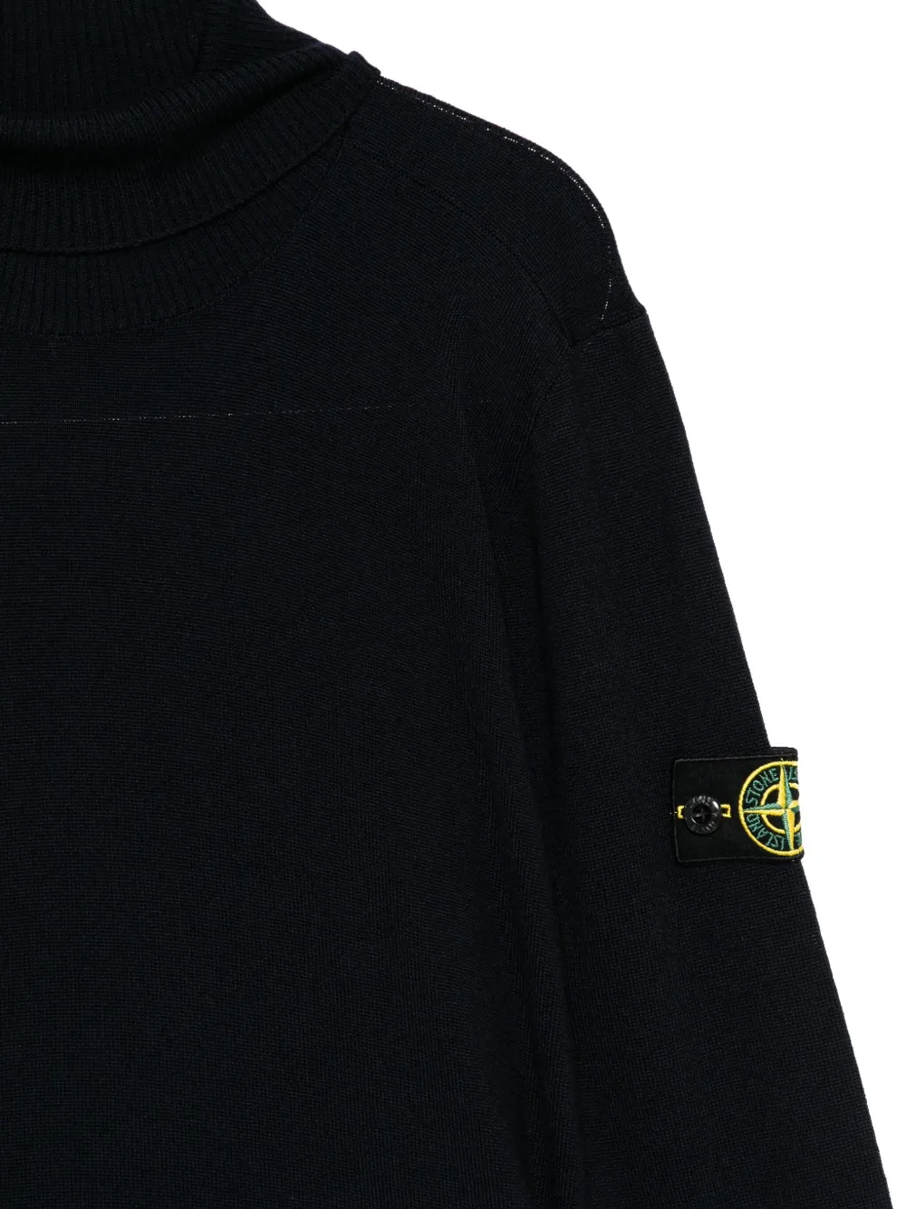 Водолазка темно-синего цвета с длинными рукавами и нашивкой-логотипом из шерсти