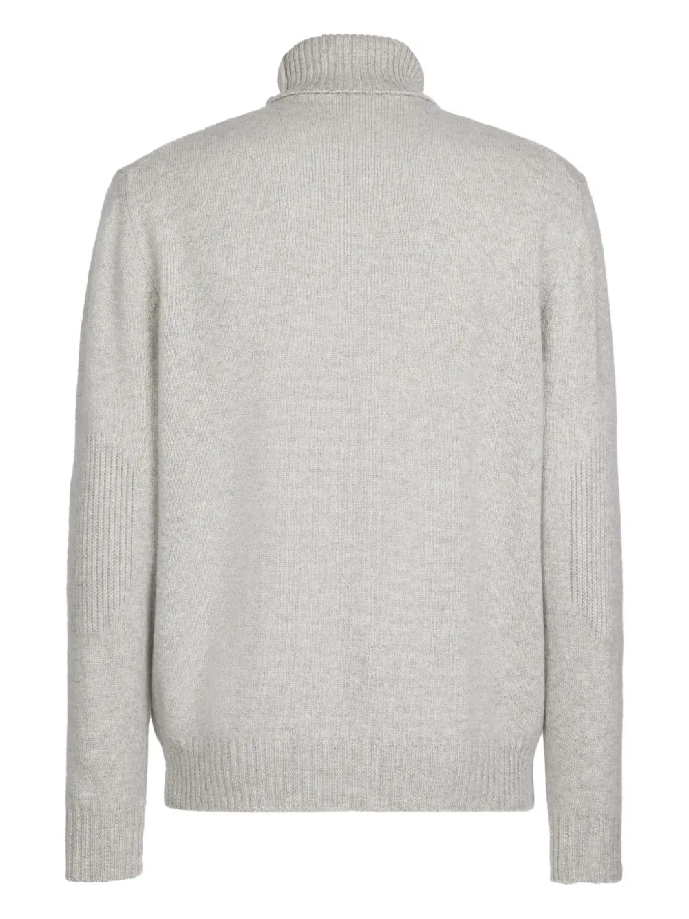 Светло-серый водолазка с ребристыми манжетами и длинными рукавами из кашемира.