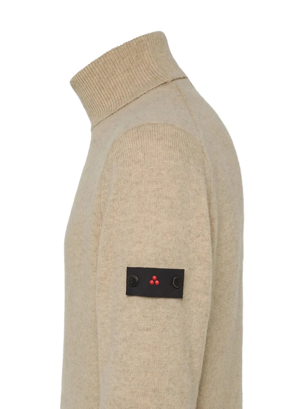 Бежевый воротник-стойка, ребристые манжеты и нашивка с логотипом на подоле