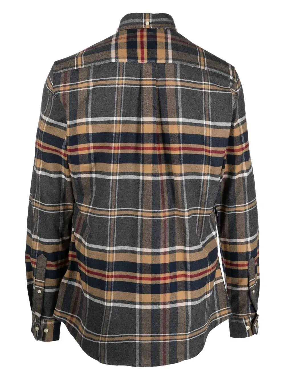 Серый, расцветка Light Brown, красный, хлопок, строгий крой, клетчатый узор, маленькая подвеска с логотипом, нагрудный накладной карман, воротник на пуговицах, длинные рукава, манжеты на пуговицах и закругленный подол.