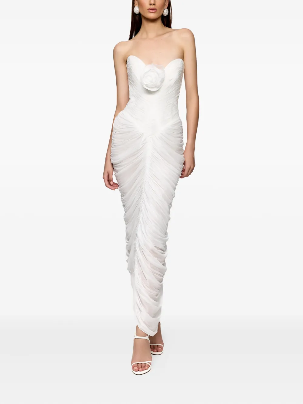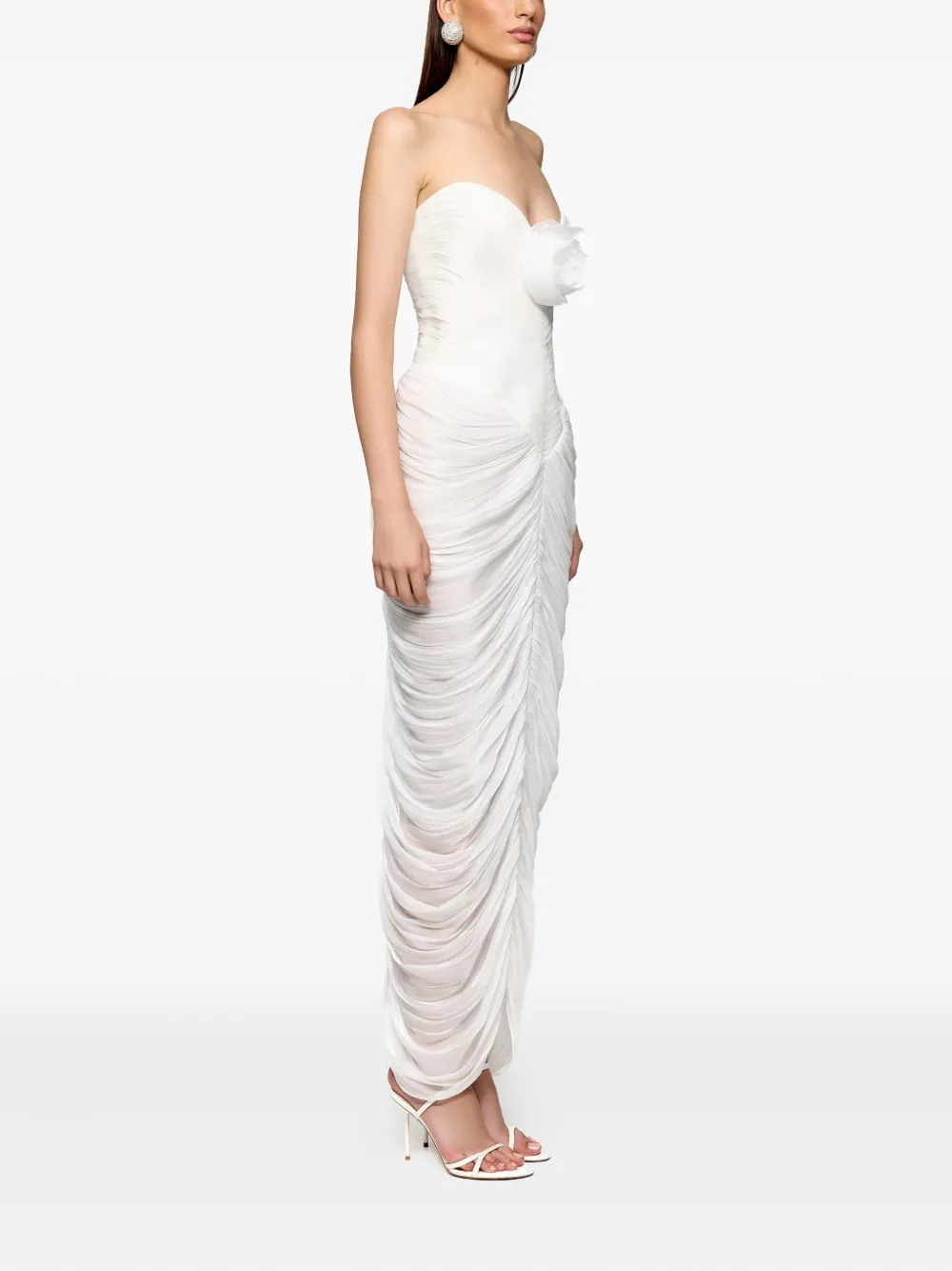 Длинное платье с драпировкой, украшенное розами Ana Radu, белый
