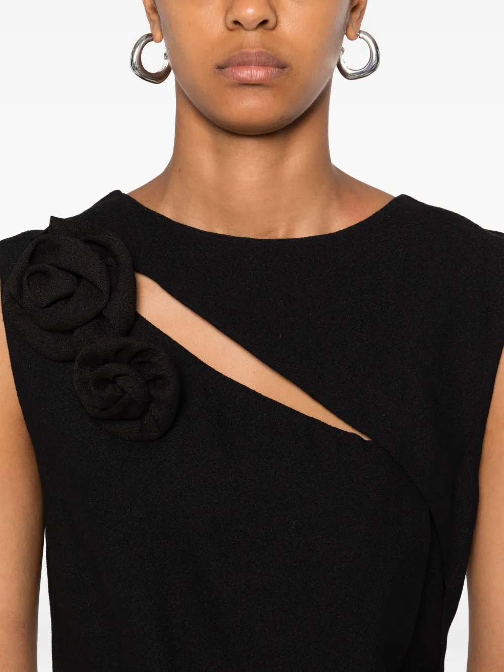 Черный лиф без рукавов с отделкой в виде замочной скважины и драпировкой.