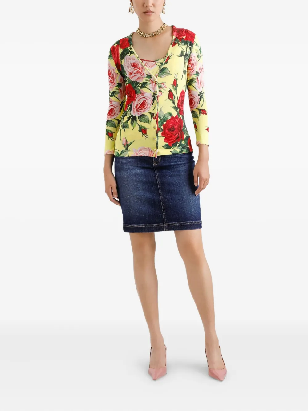 Топ с принтом роз DOLCE & GABBANA, желтый