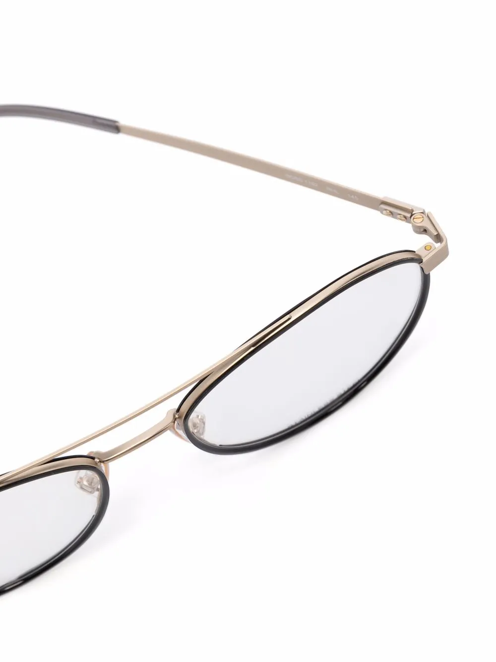 Прозрачные линзы, круглая оправа, двойной мост, прямые дужки и дужки с закругленными концами. В комплект входит защитный чехол для очков.