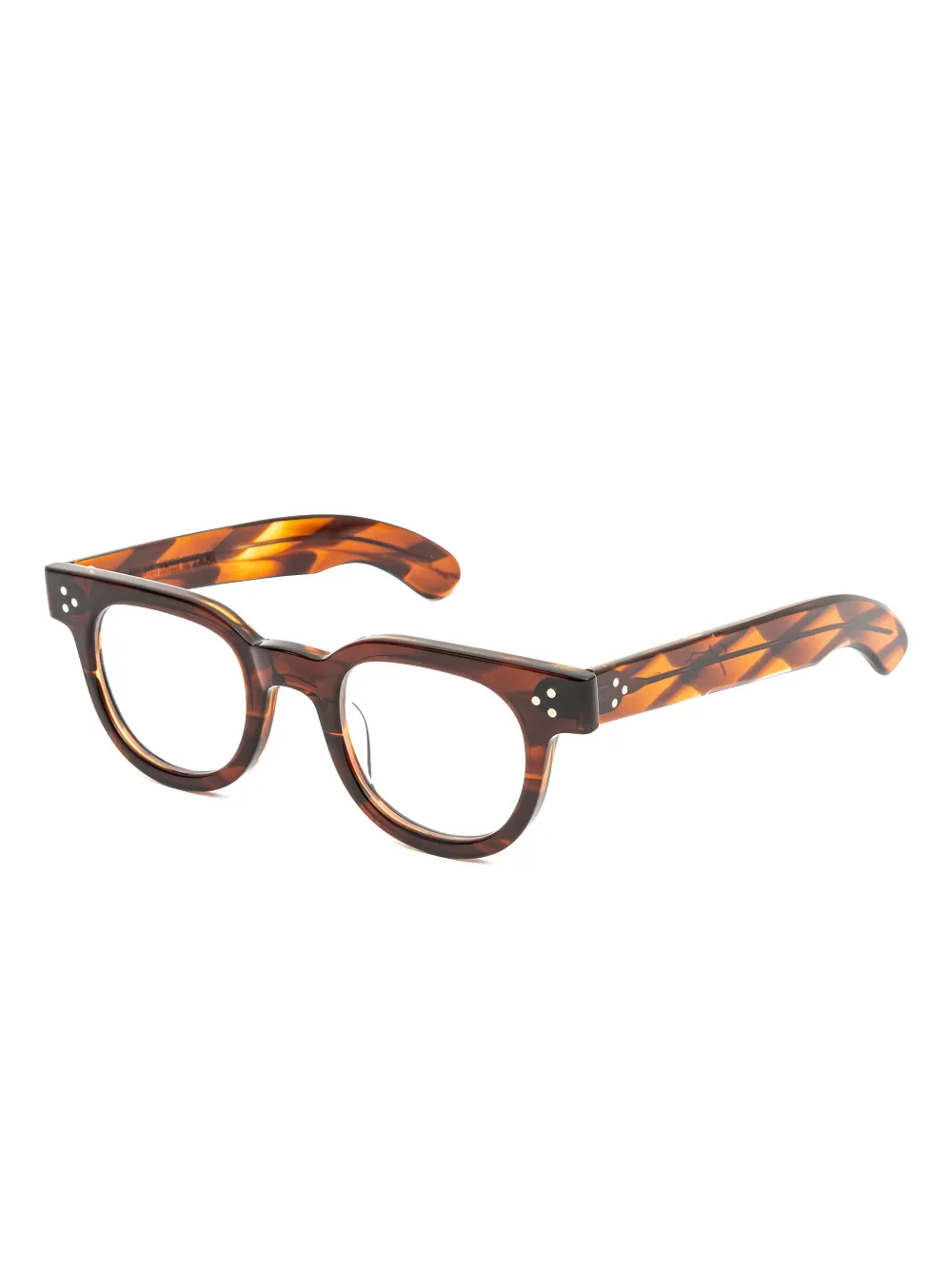 Круглая оправа коричневого цвета с прозрачными линзами. Эти очки поставляются с защитным футляром. Все очки FARFETCH продаются в оправах без диоптрий.