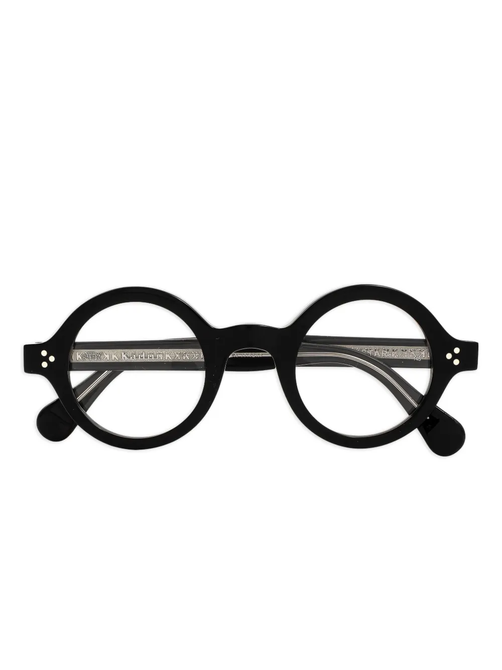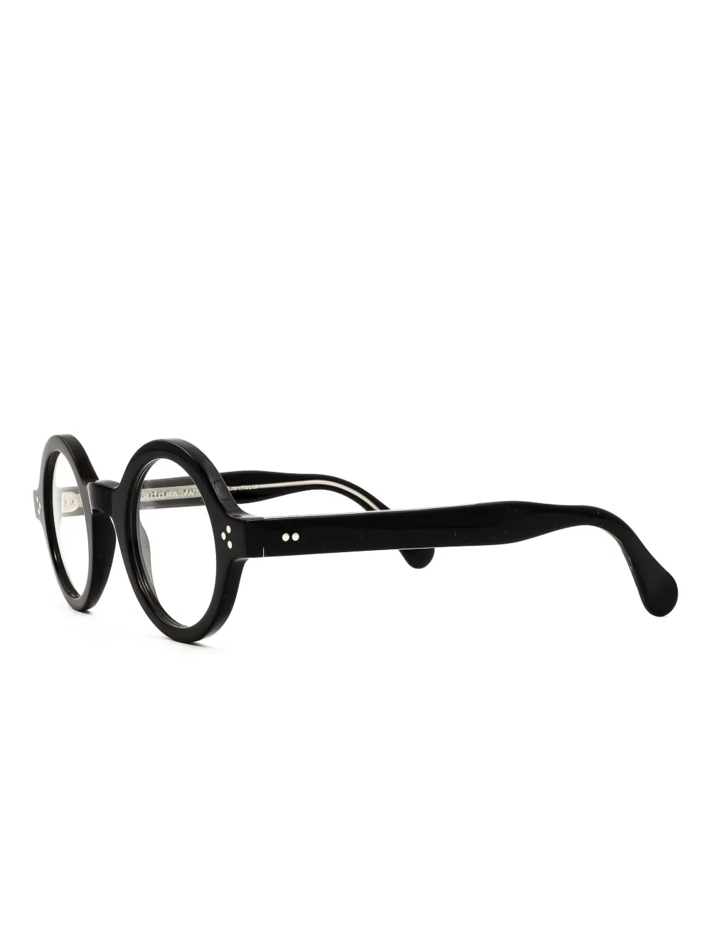 Круглая чёрная оправа с прозрачными линзами. Эти очки поставляются с защитным футляром. Все очки FARFETCH продаются в оправах без диоптрий.