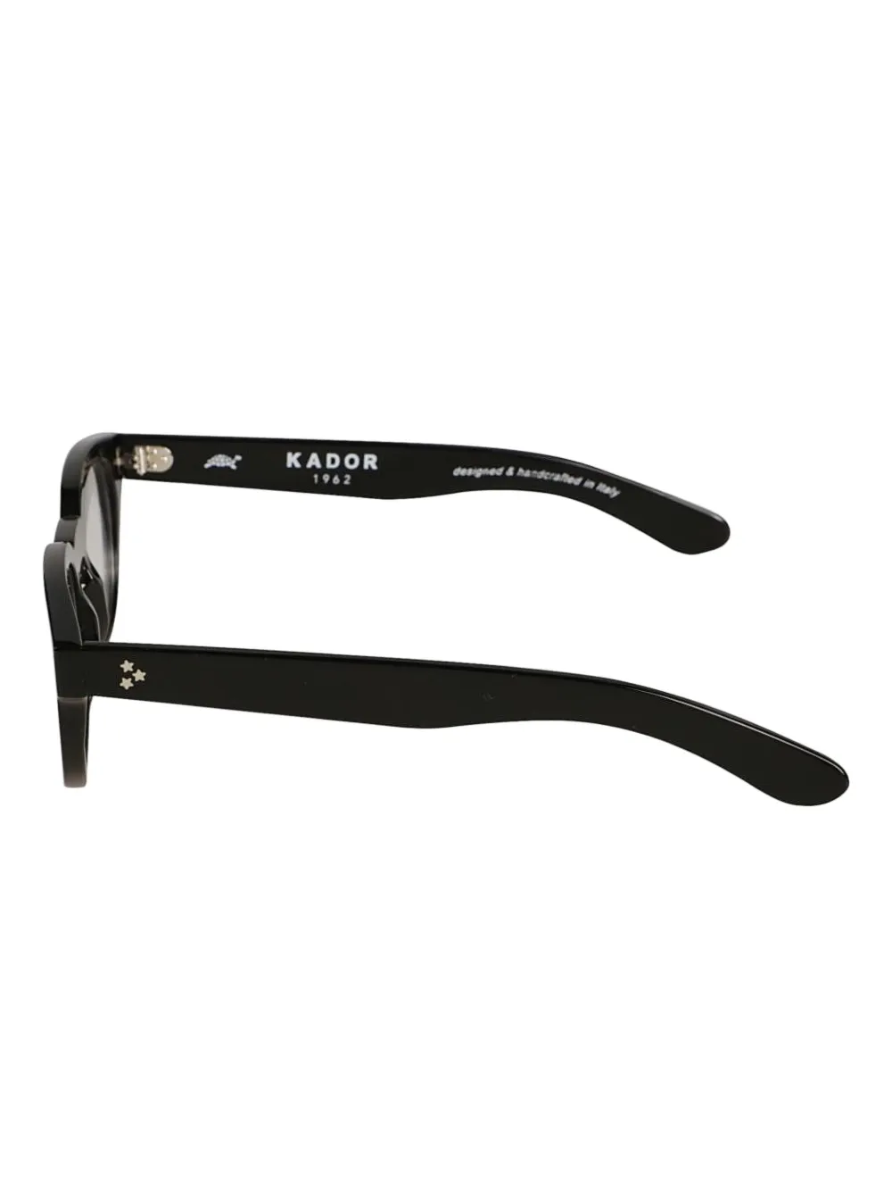 Круглая черная оправа с прозрачными линзами. Очки поставляются с защитным футляром.