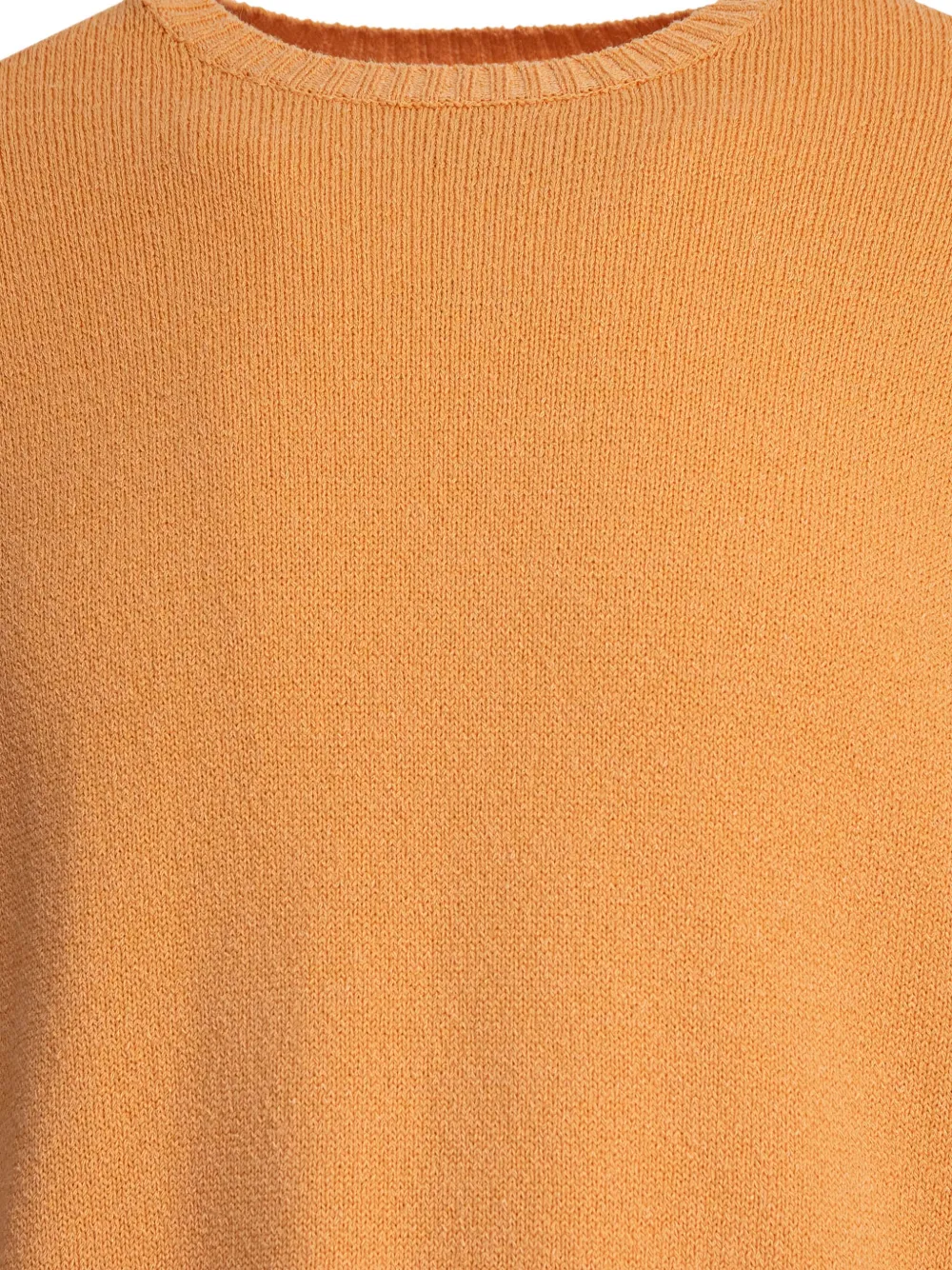 Оранжевый, хлопчатобумажная смесь со льном, ребристый подол, длинные рукава, круглый вырез, гладкая вязка