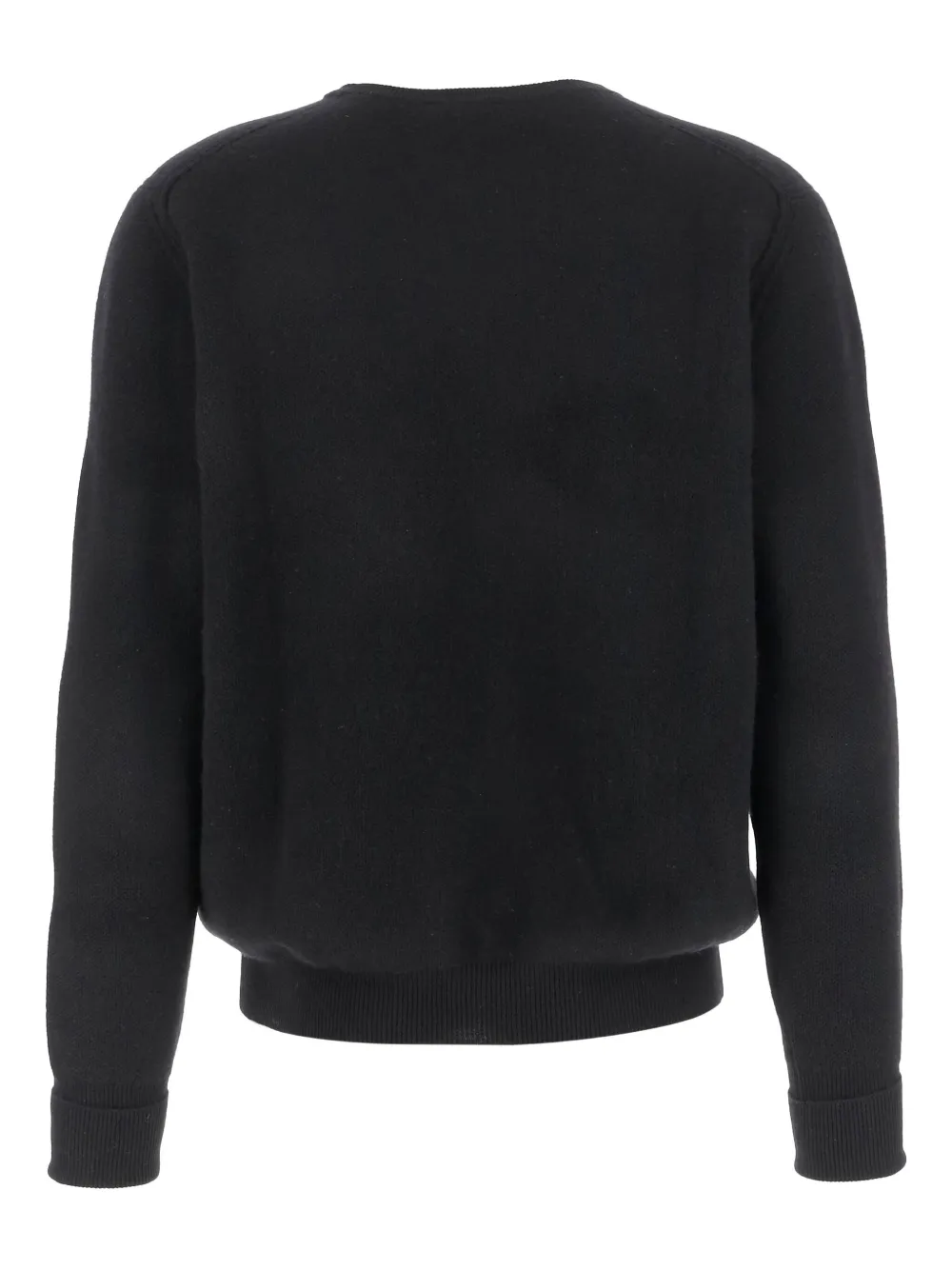 Черный кашемир, круглый вырез, длинные рукава, прямой подол, ребристые края.