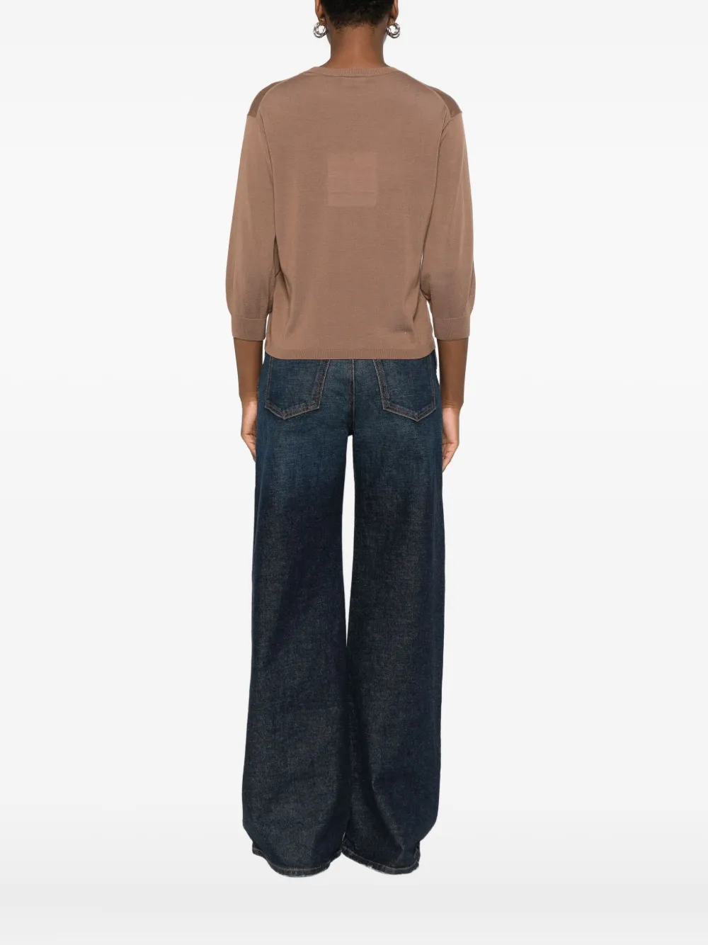 Коричневый шерстяной свитер с круглым вырезом и рукавами три четверти