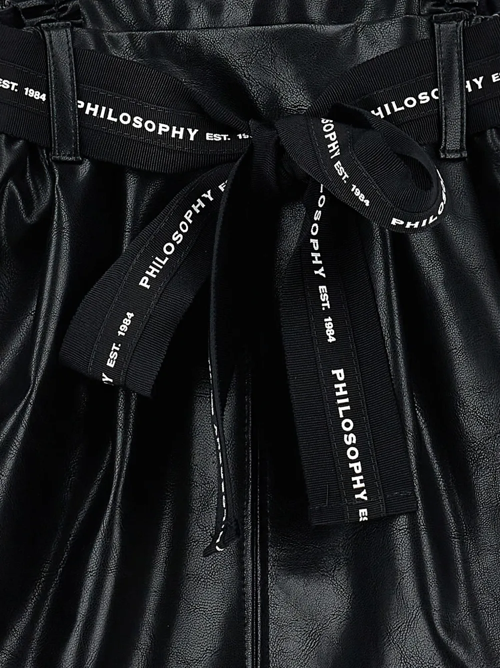 Черная юбка из искусственной кожи с оборками, логотипом и квадратным вырезом, присборенная