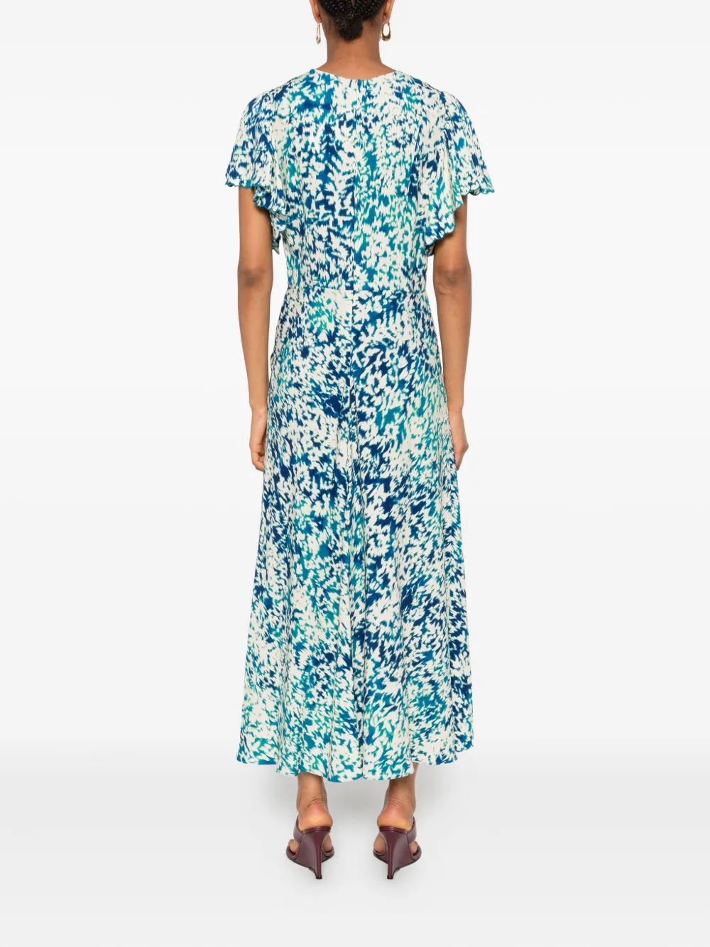 Атлантический синий абстрактный принт, рукава-крылышки, круглый вырез