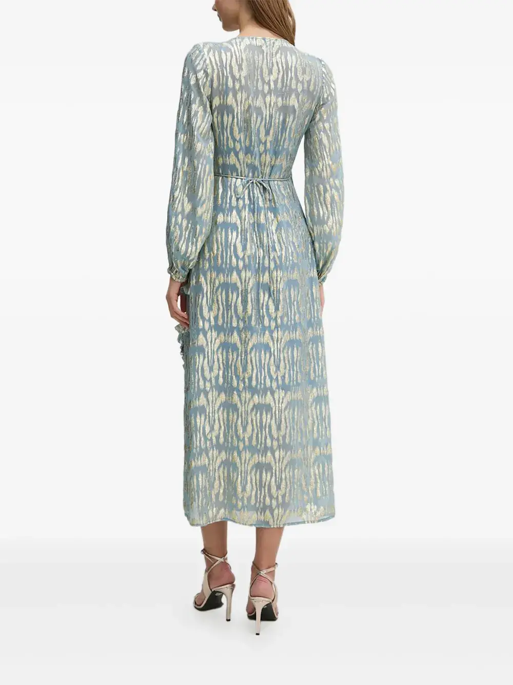 Платье миди с оборками и эффектом металлик NEVER FULLY DRESSED, синий