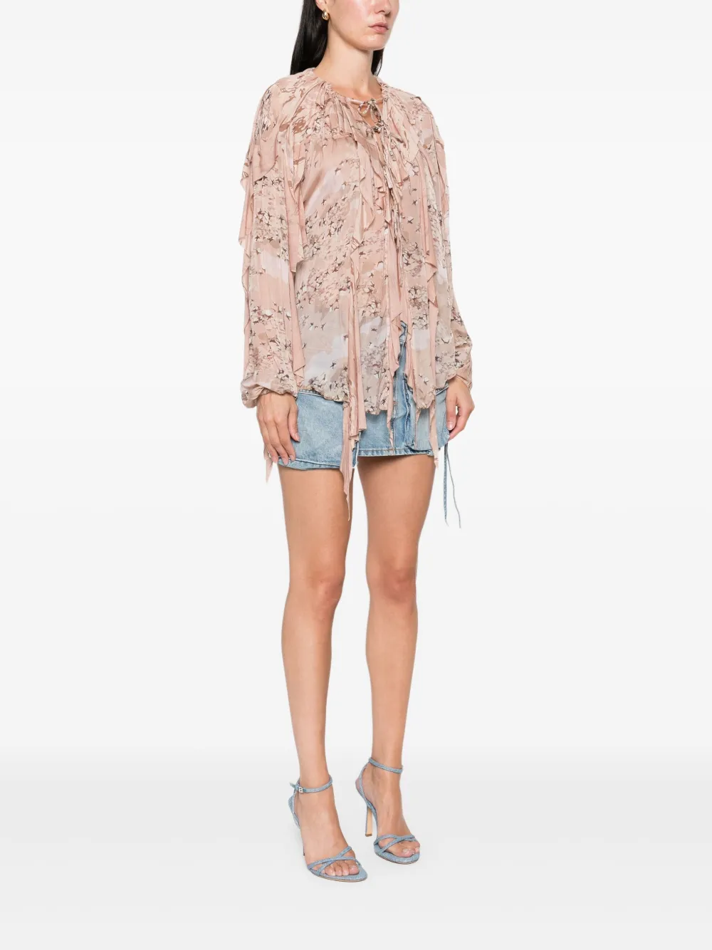 Блузка с принтом и оборками DIESEL, коричневый 32 270₽