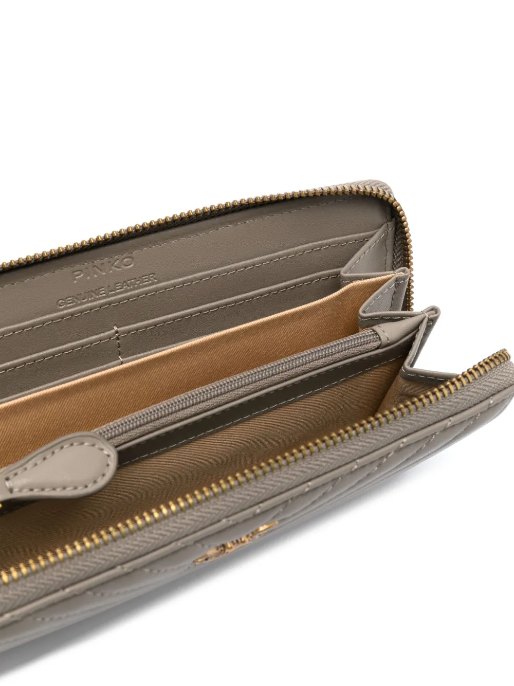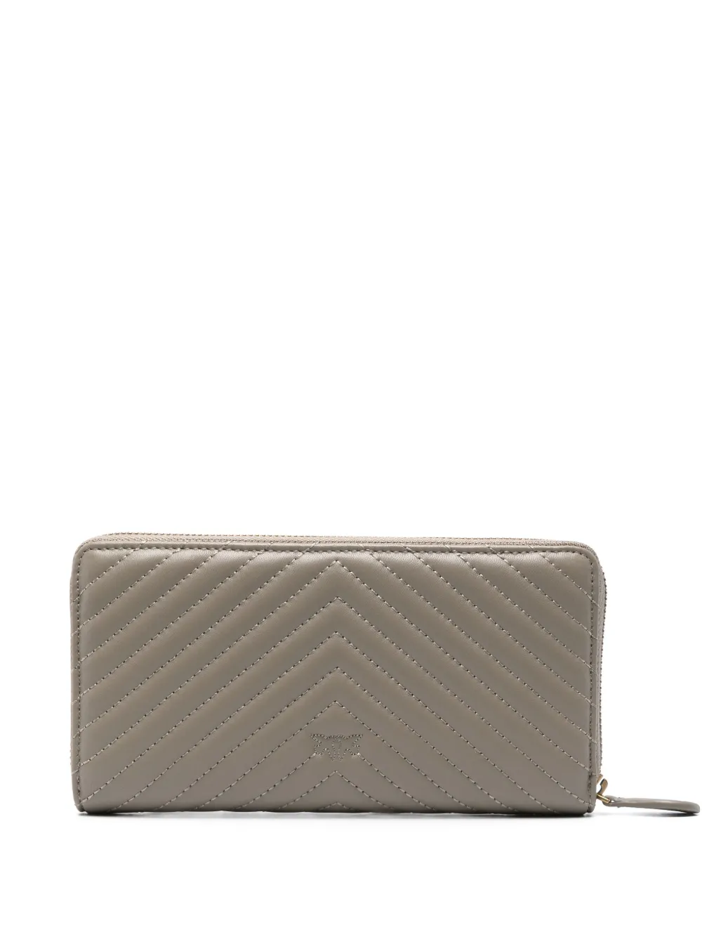Подробнее о товаре: • расцветка Sesame Beige • телячья кожа • гладкая текстура кожи • дутый материал • стеганый дизайн с узором шеврон • пряжка Love Birds • вышитый логотип сзади • несколько отделений • гравировка логотипа • внутреннее отделение для банкнот • восемь внутренних отделений для карт • внутренний карман на молнии • цельная подкладка • золотистая фурнитура • круговая молния