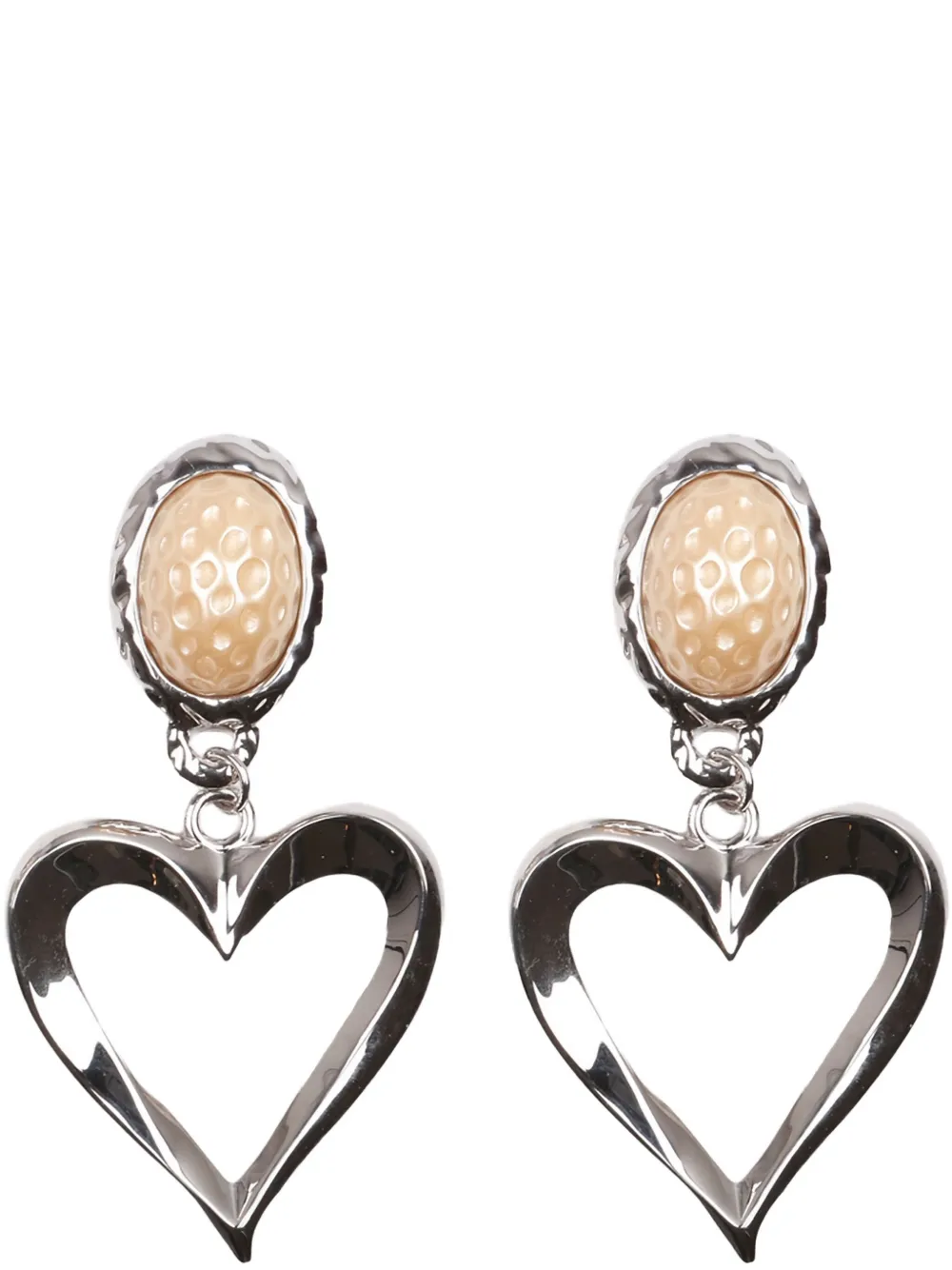 Украшение в виде сферы серебристого тона, полированная отделка, застежка-клипса в виде сердца. Серьги продаются парой.