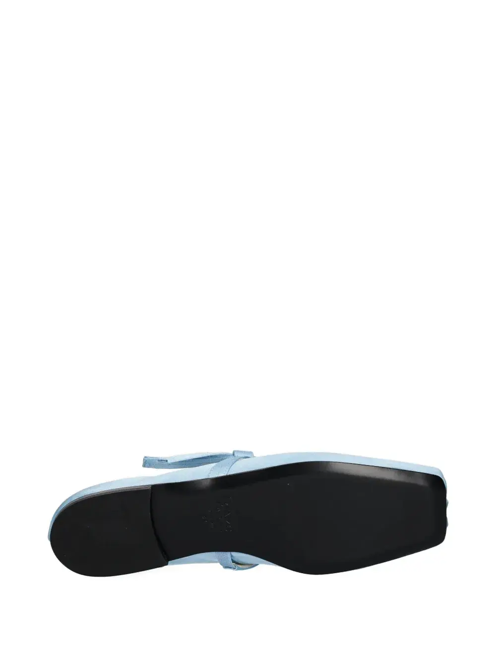 Туфли из светло-голубого атласа с завязанным ремешком и квадратным носком.