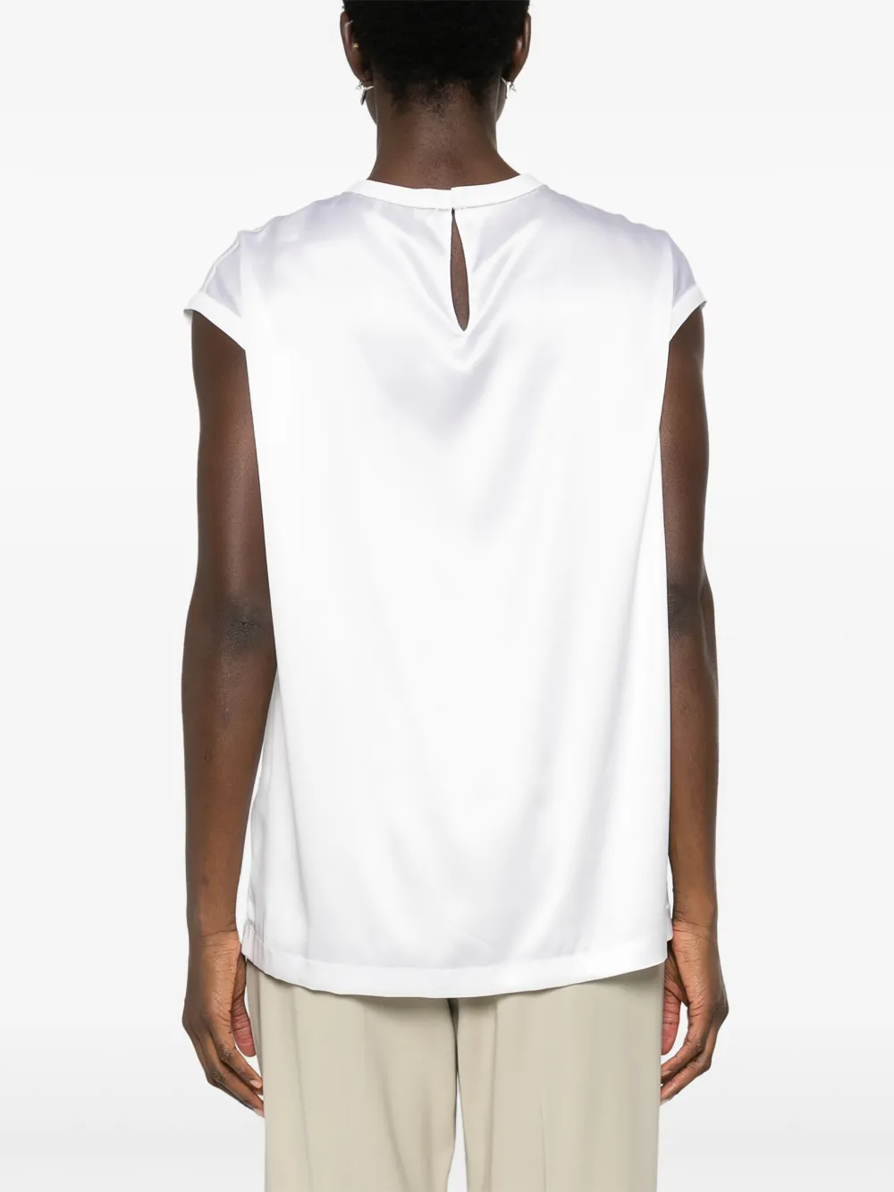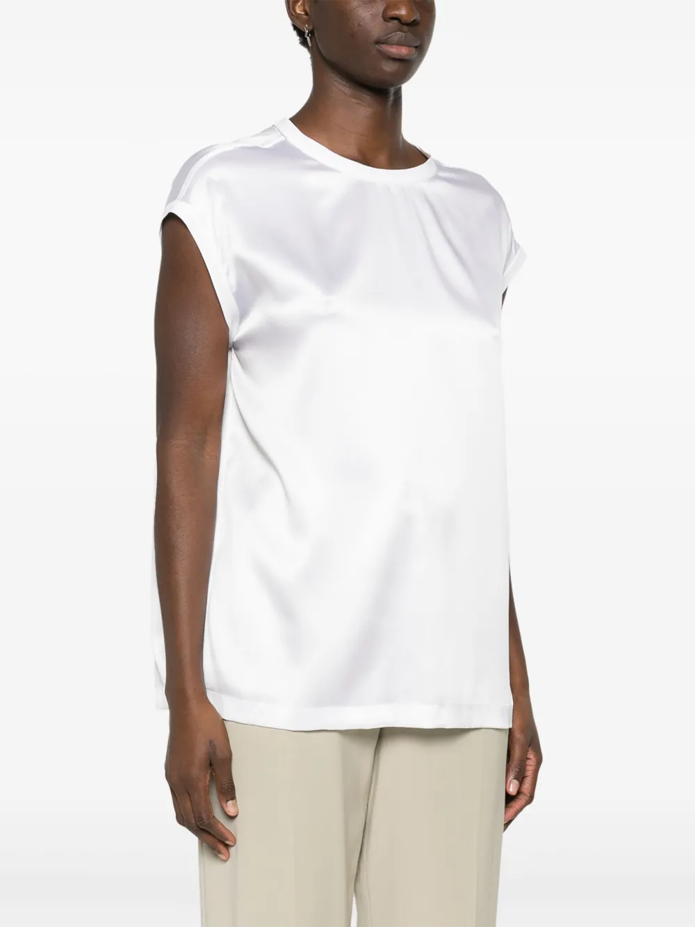 Атласный топ из эластичного шелка Brunello Cucinelli, белый