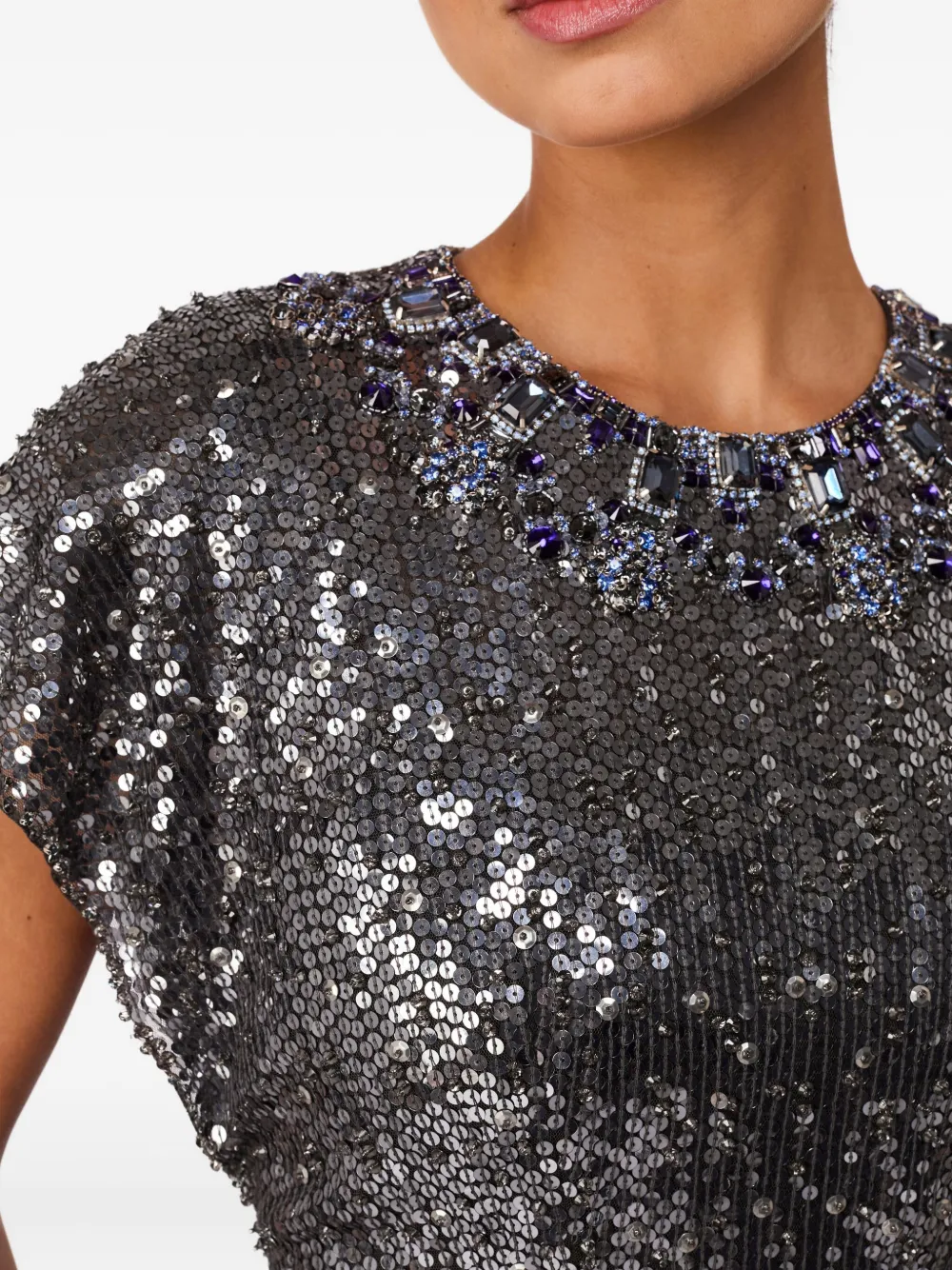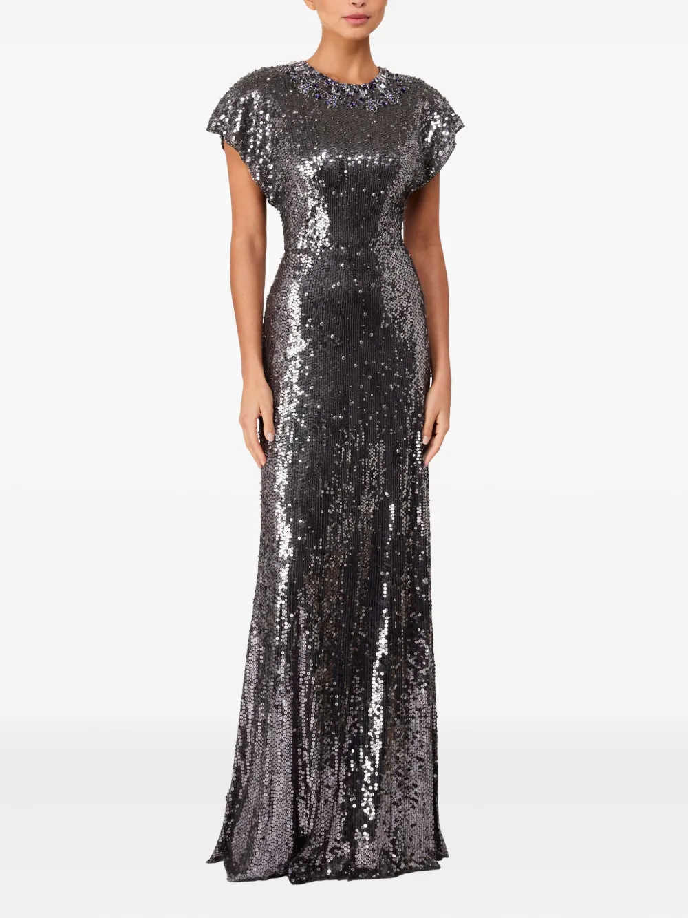 Платье макси с пайетками Jenny Packham, серый