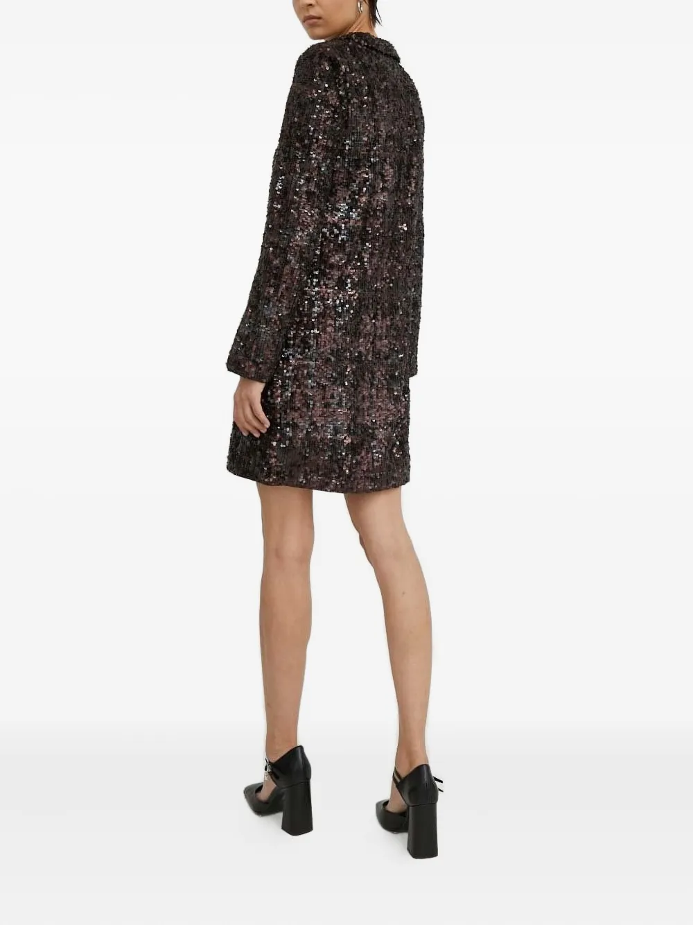 Коричневые пайетки, V-образный вырез, длинные рукава, длина мини