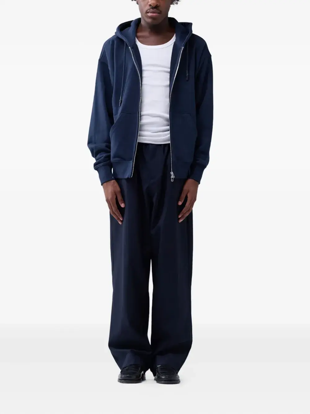 Темно-синяя ракушка с логотипом, застежка-молния, капюшон, длинные рукава, ребристые манжеты.