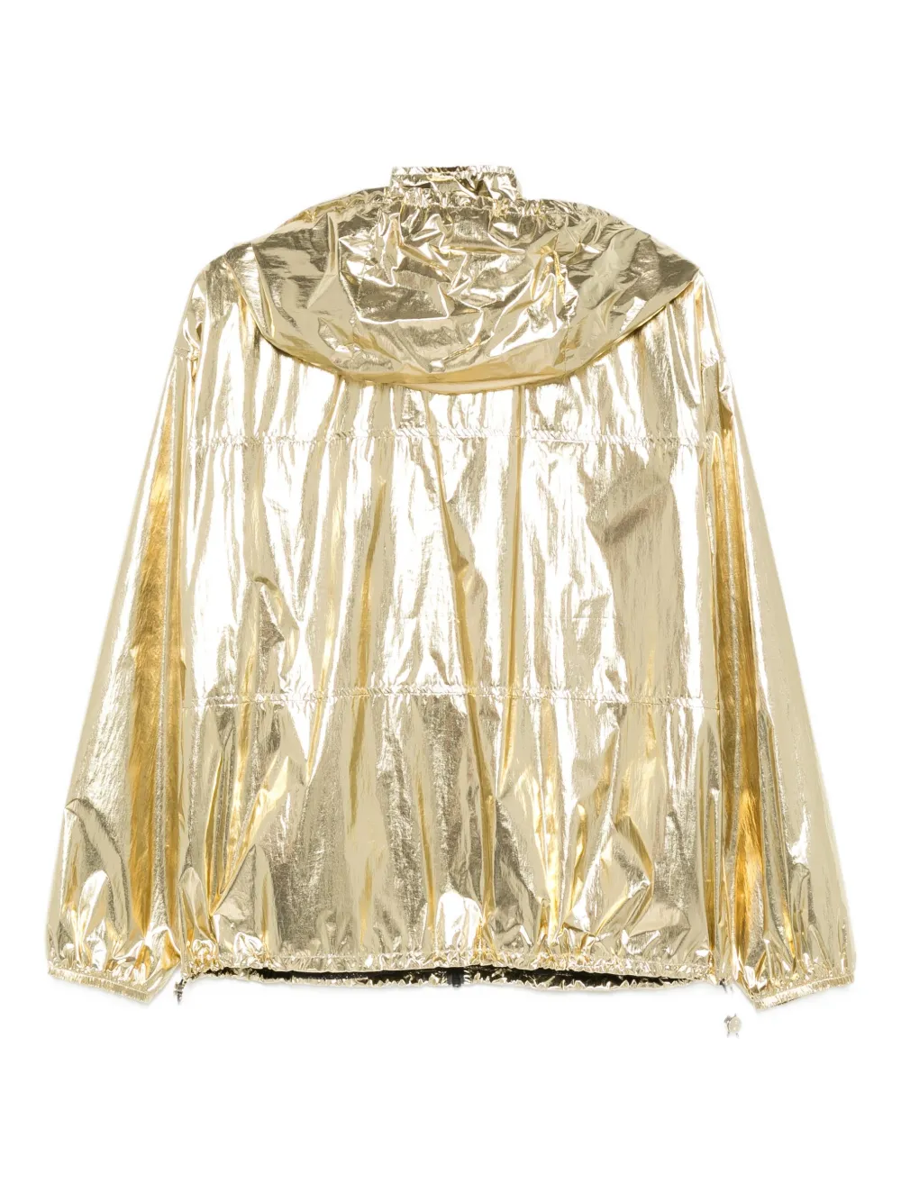 Золотистый металлический эффект, капюшон, застежка-молния, длинные рукава, кулиска на подоле