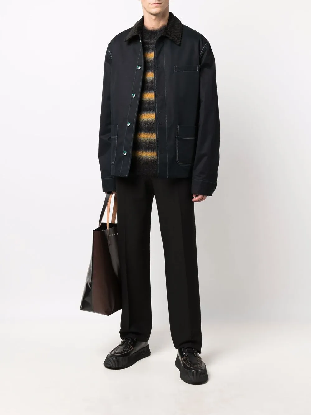 Куртка-рубашка с декоративной строчкой Marni, черный